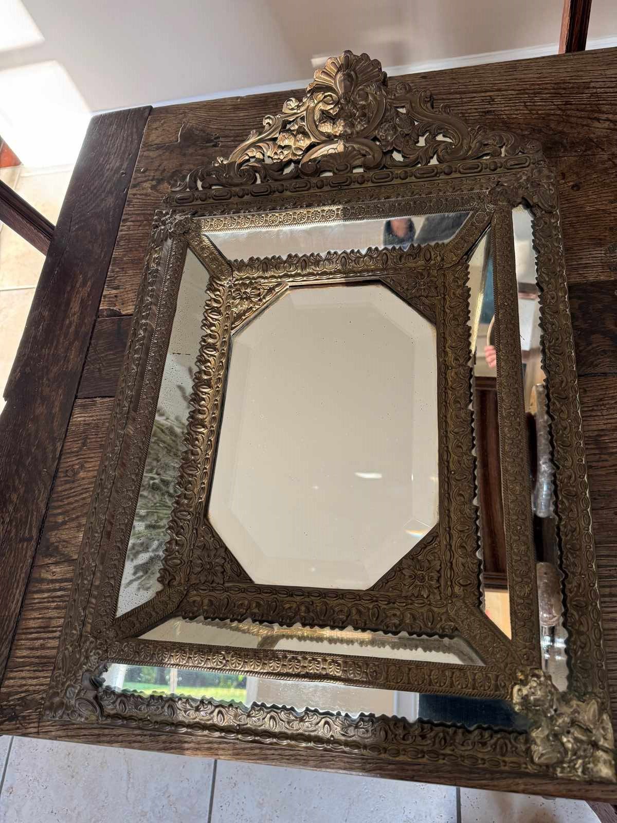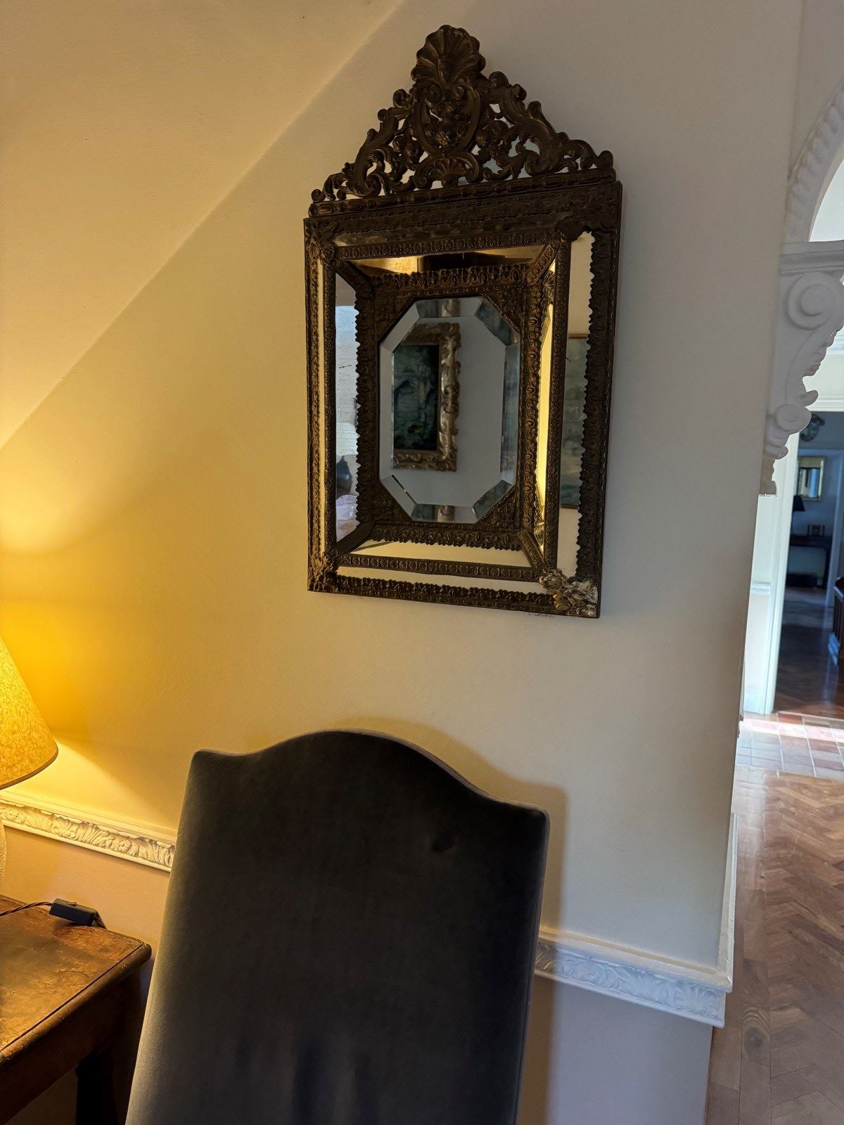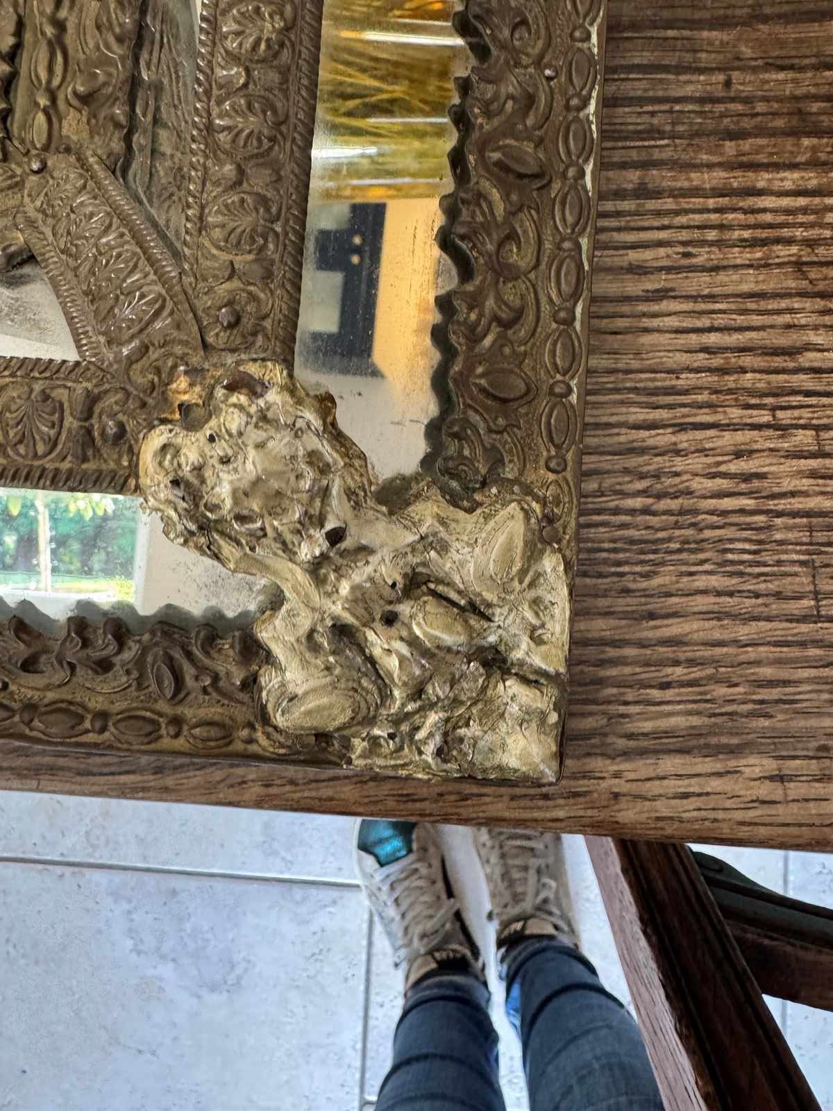 19th Century French Ornate Brass Repousse Napoléon III Bevelled Mirror. Some restoration to the corners, which should be visible in the photos.
