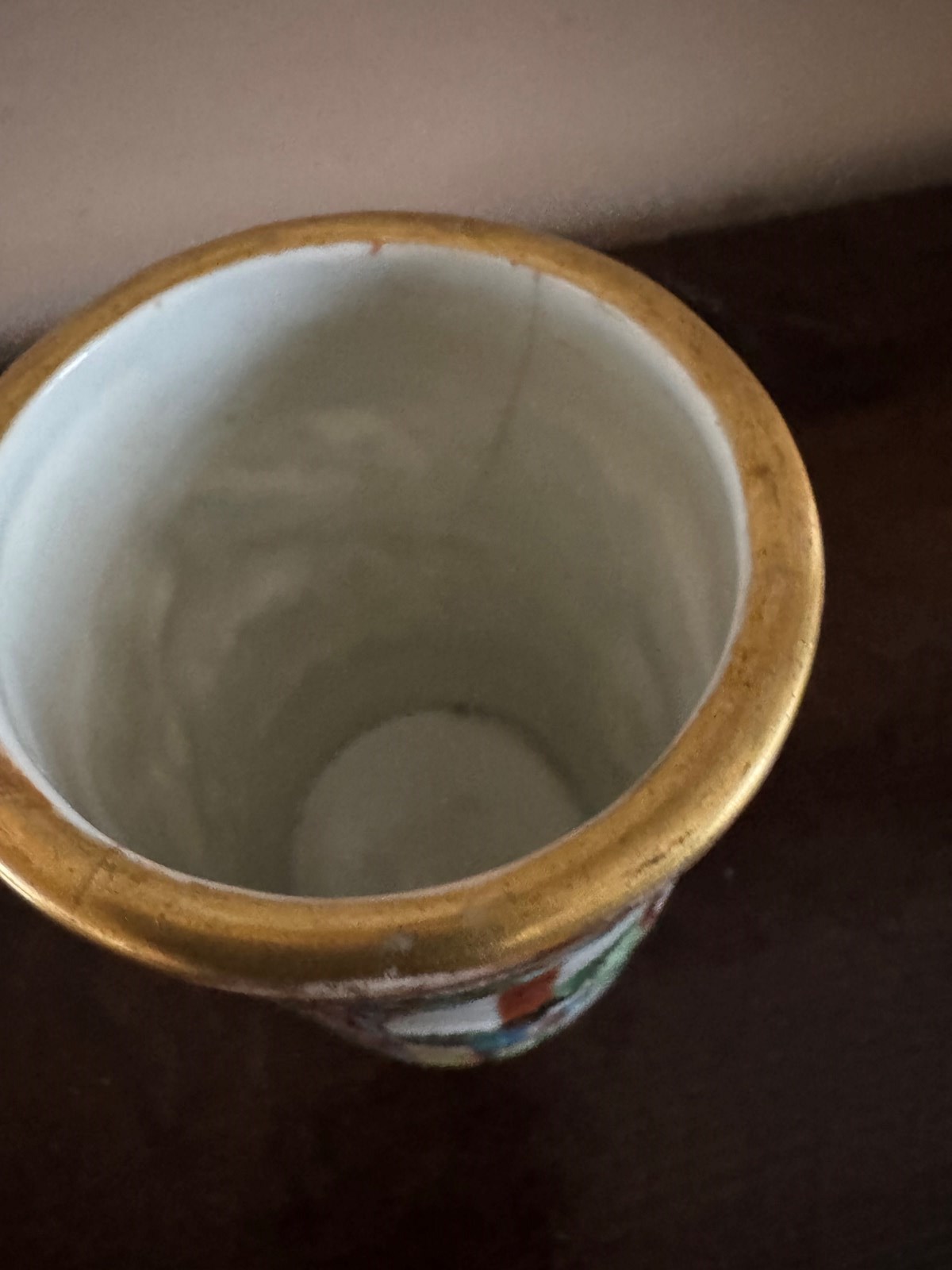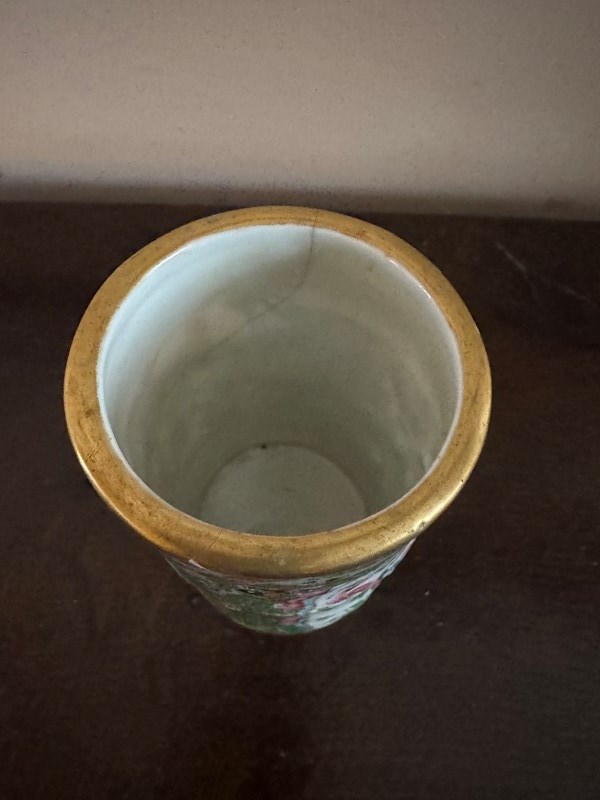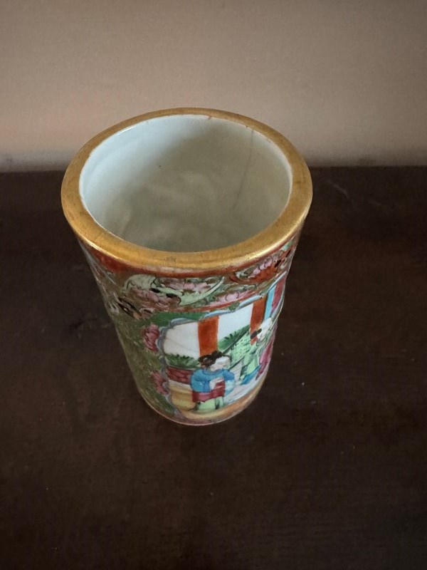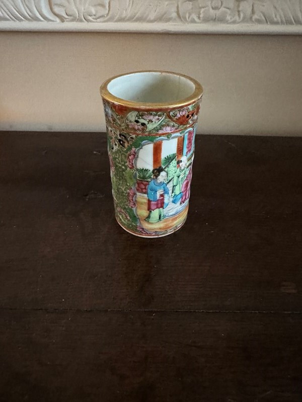 19th century Chinese Canton porcelain paint pen brush pot. Hairline crack