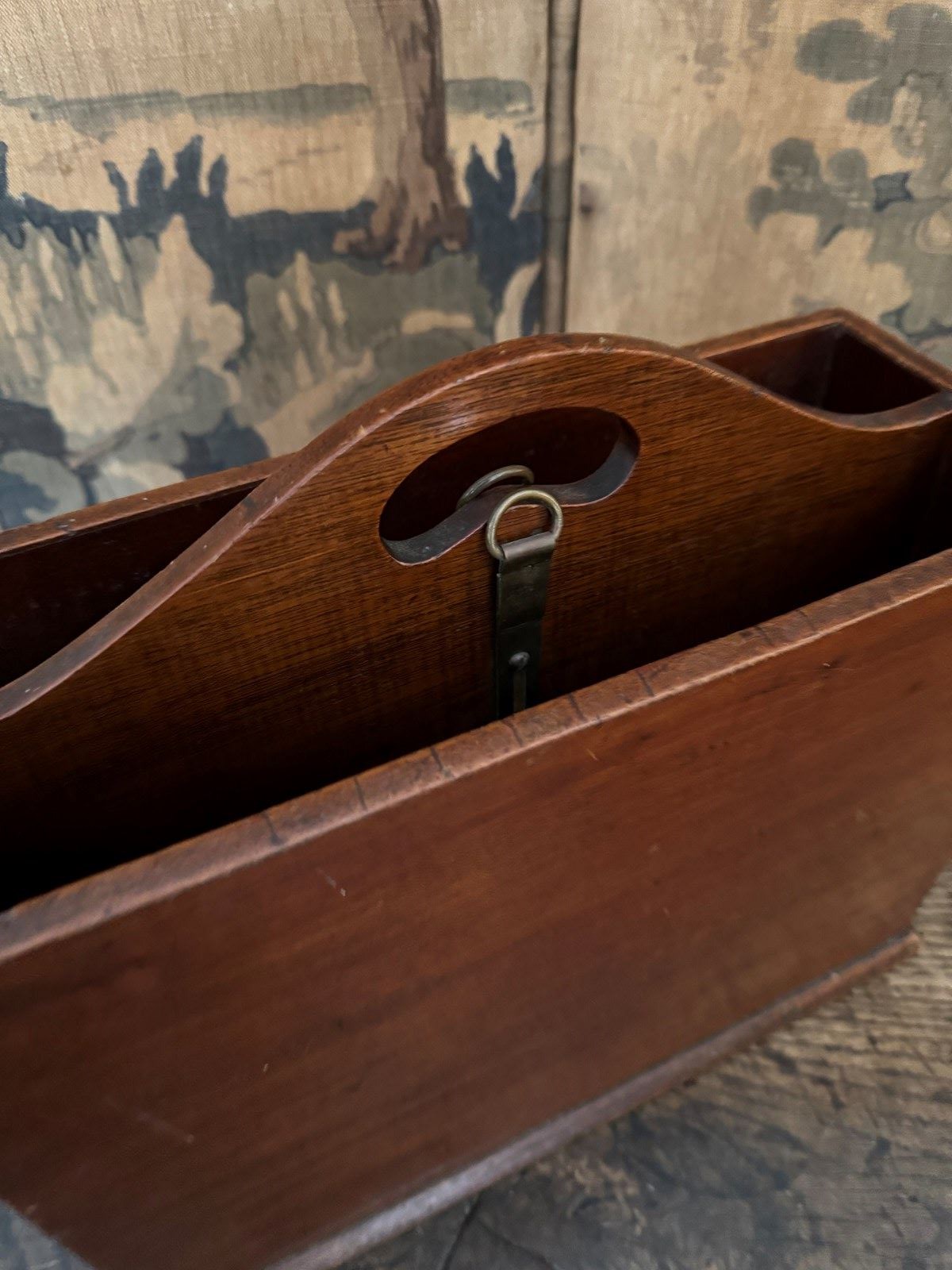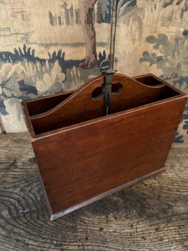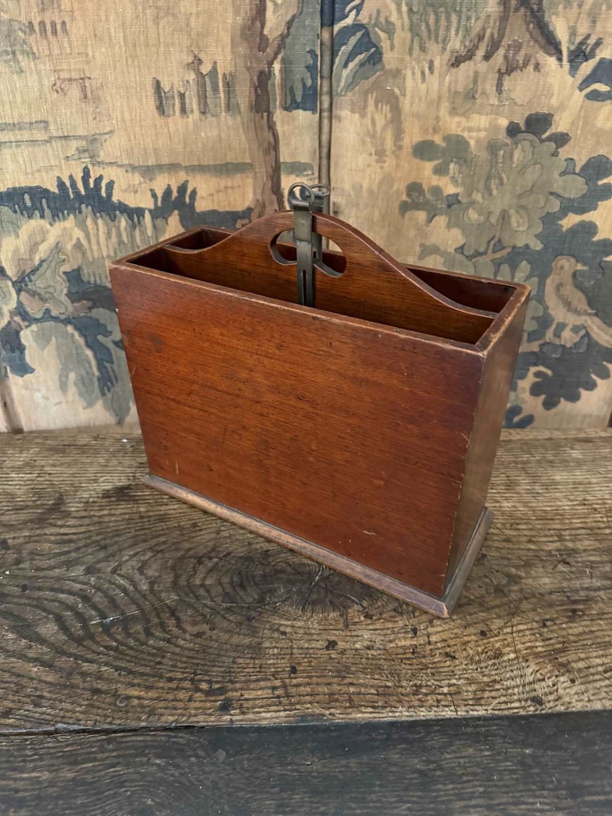 An Edwardian mahogany magazine/ letter rack, with internal retracting mechanism.