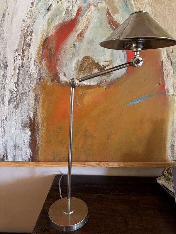 Tall nickel on brass anglepoise desk table lamp.