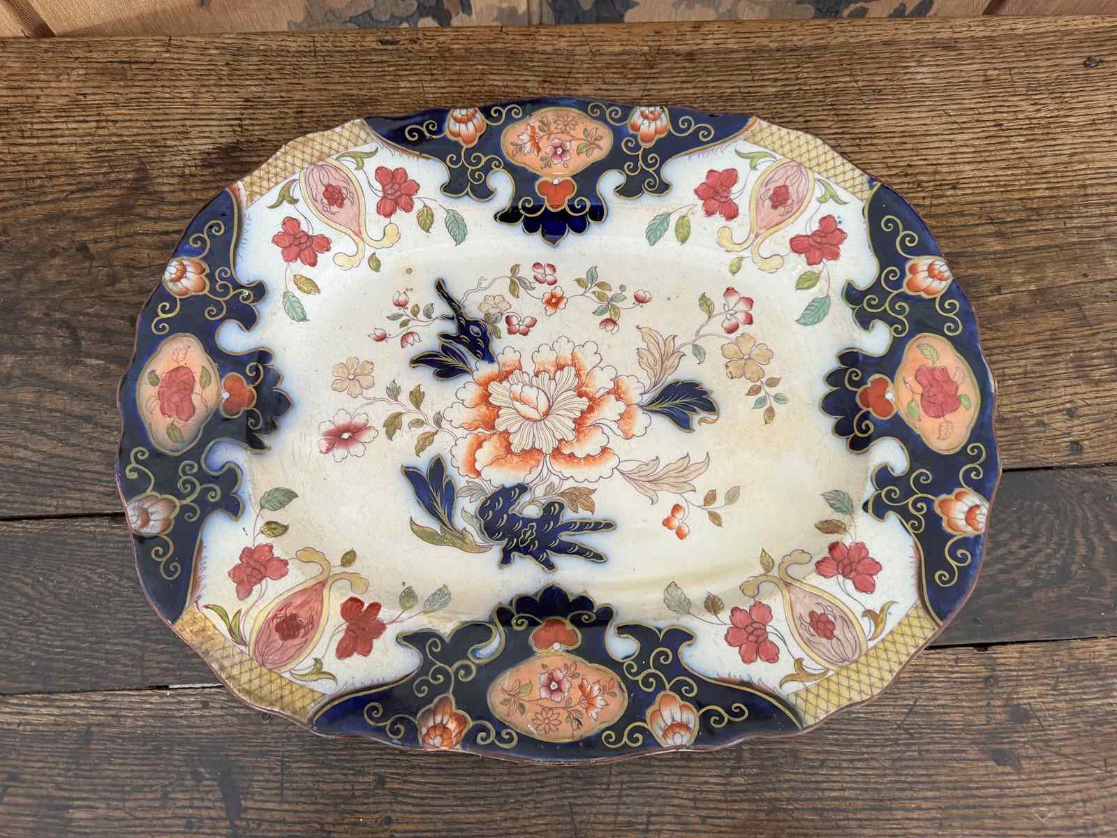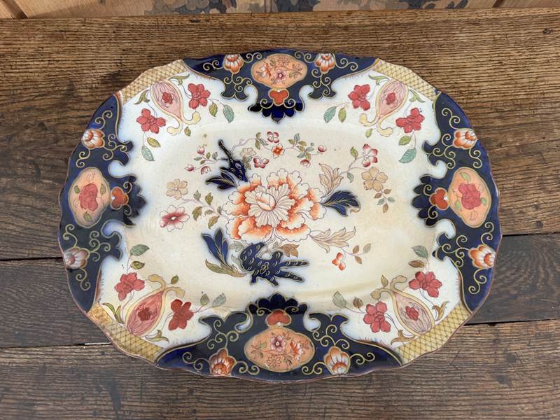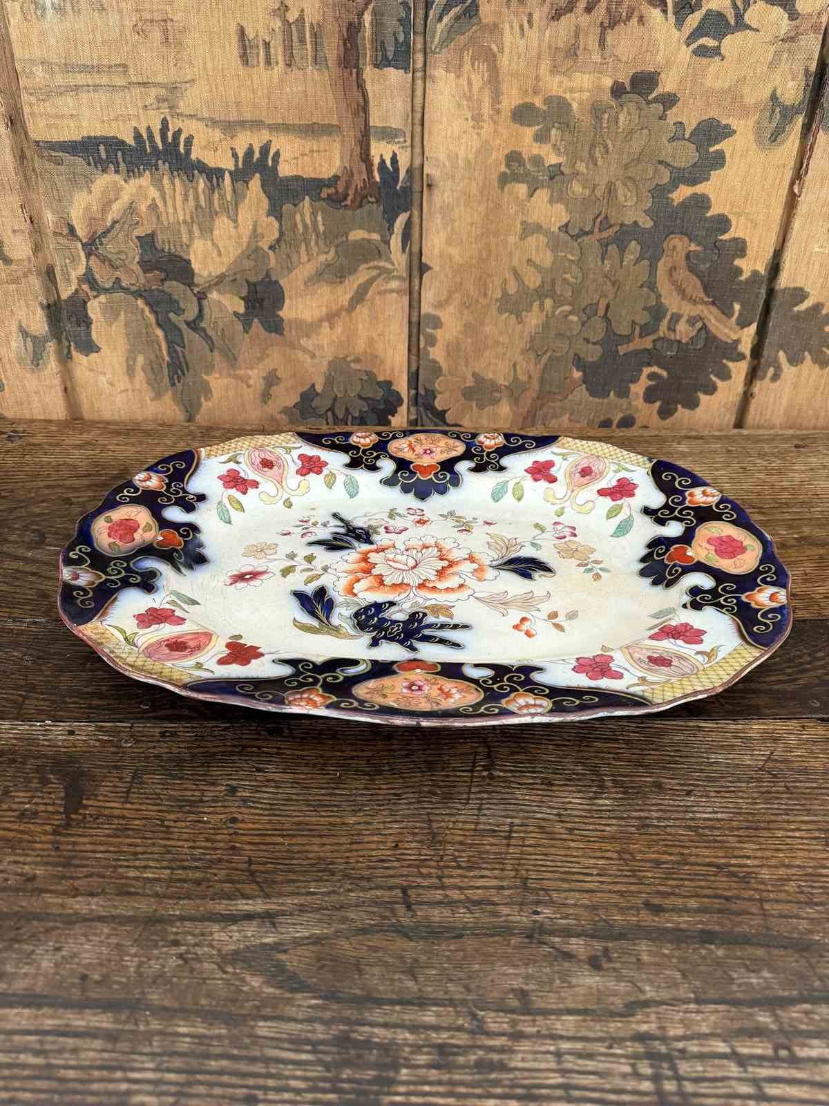 Beautiful large masons floral meat platter. 19th century highly decorative.