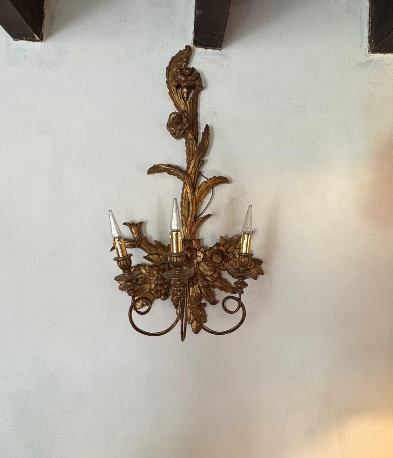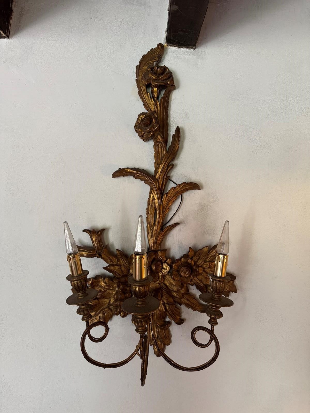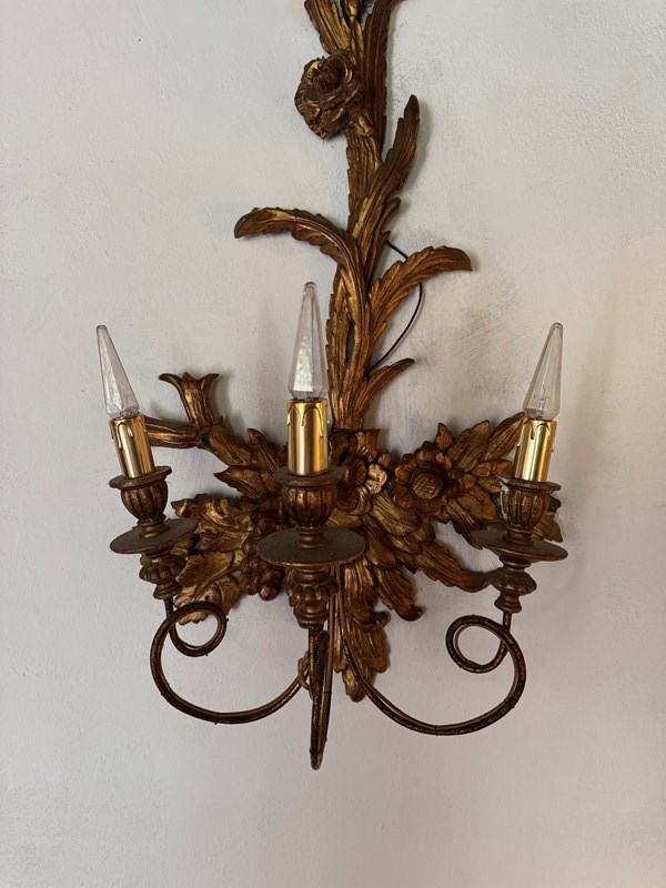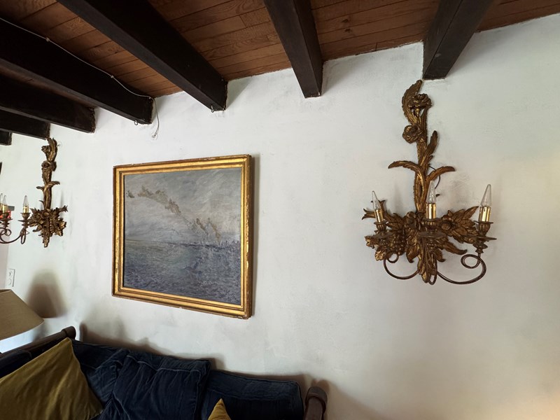 A spectacular pair of larger than average giltwood foliage wall sconces French c.1920’s. Sold fully rewired.