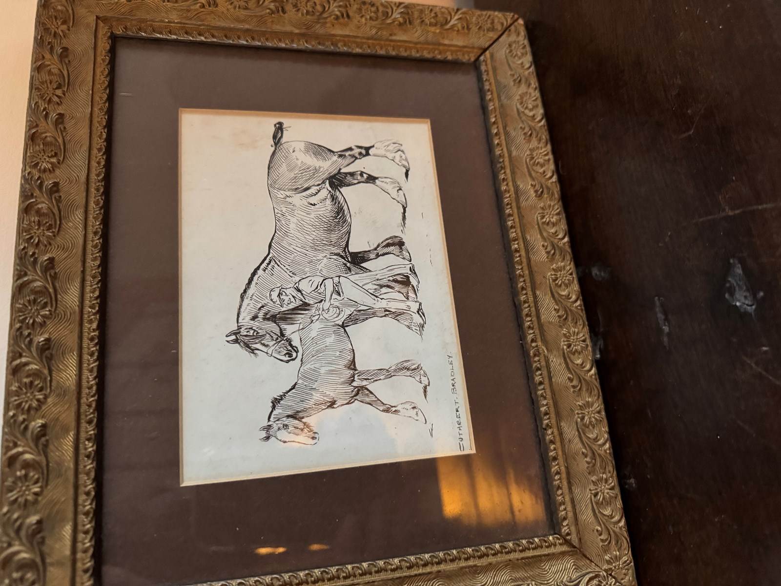 . Small pen and ink drawing by Cuthbert Bradley (1861-1941) English painter, sporting writer and magazine illustrator.