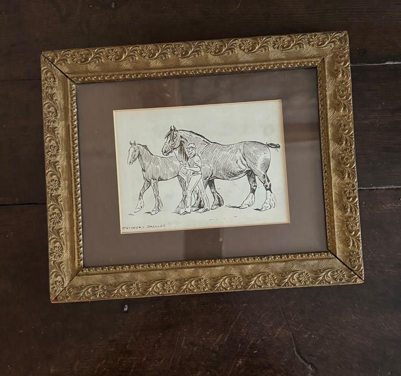 Pen And Ink Drawing Of A Horse By Cuthbert Bradley 1861-1941