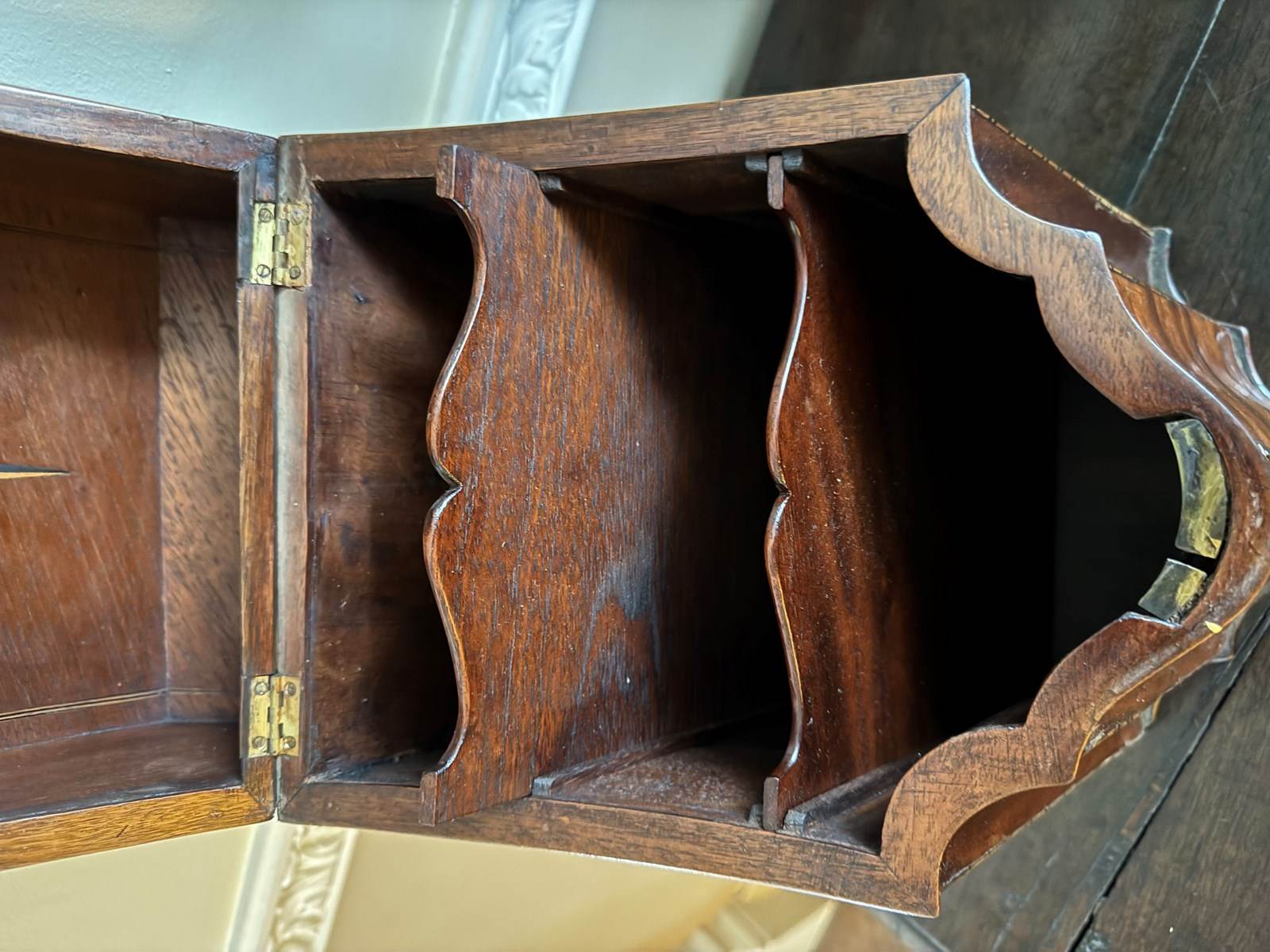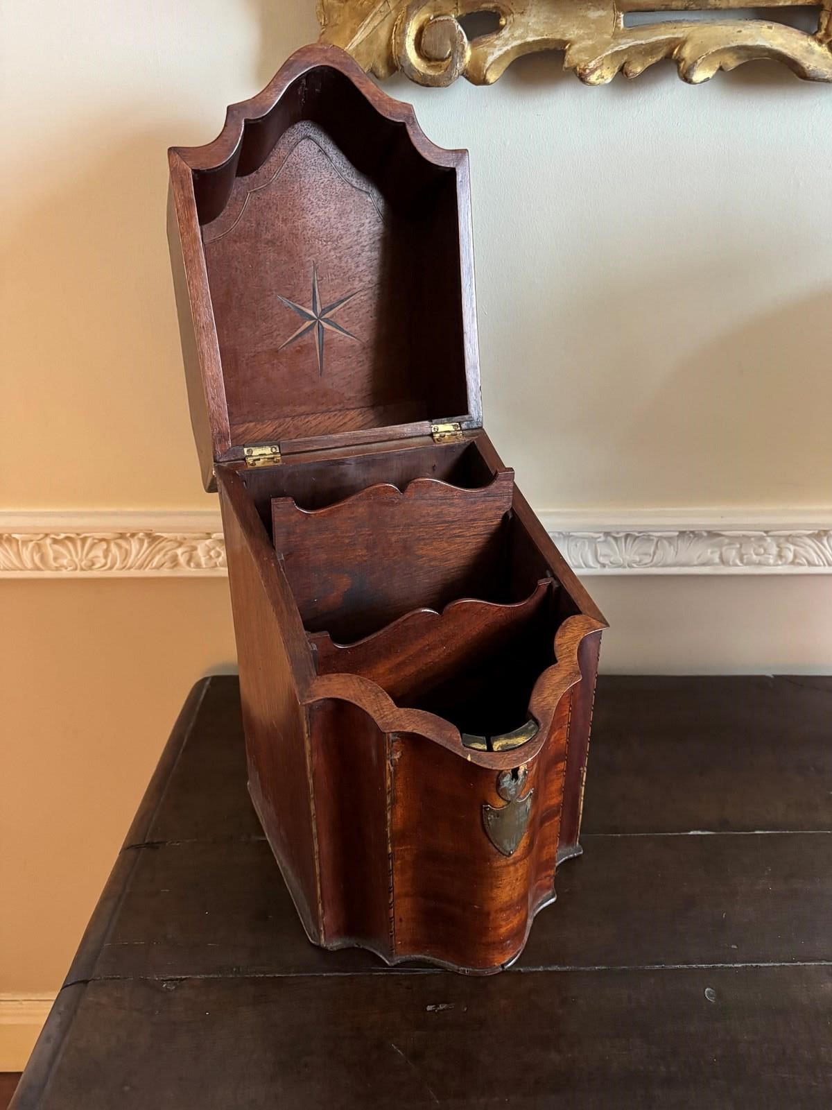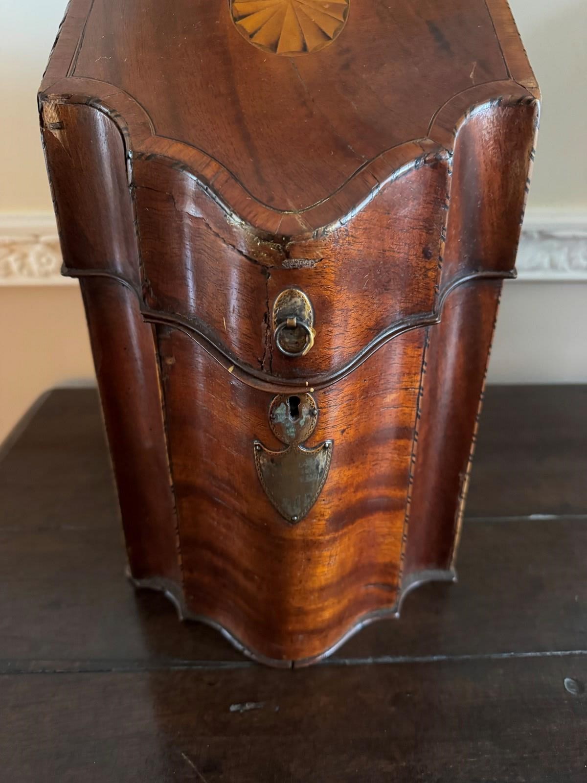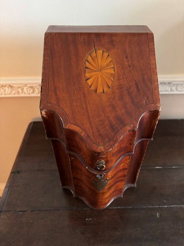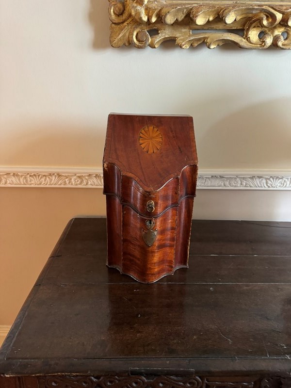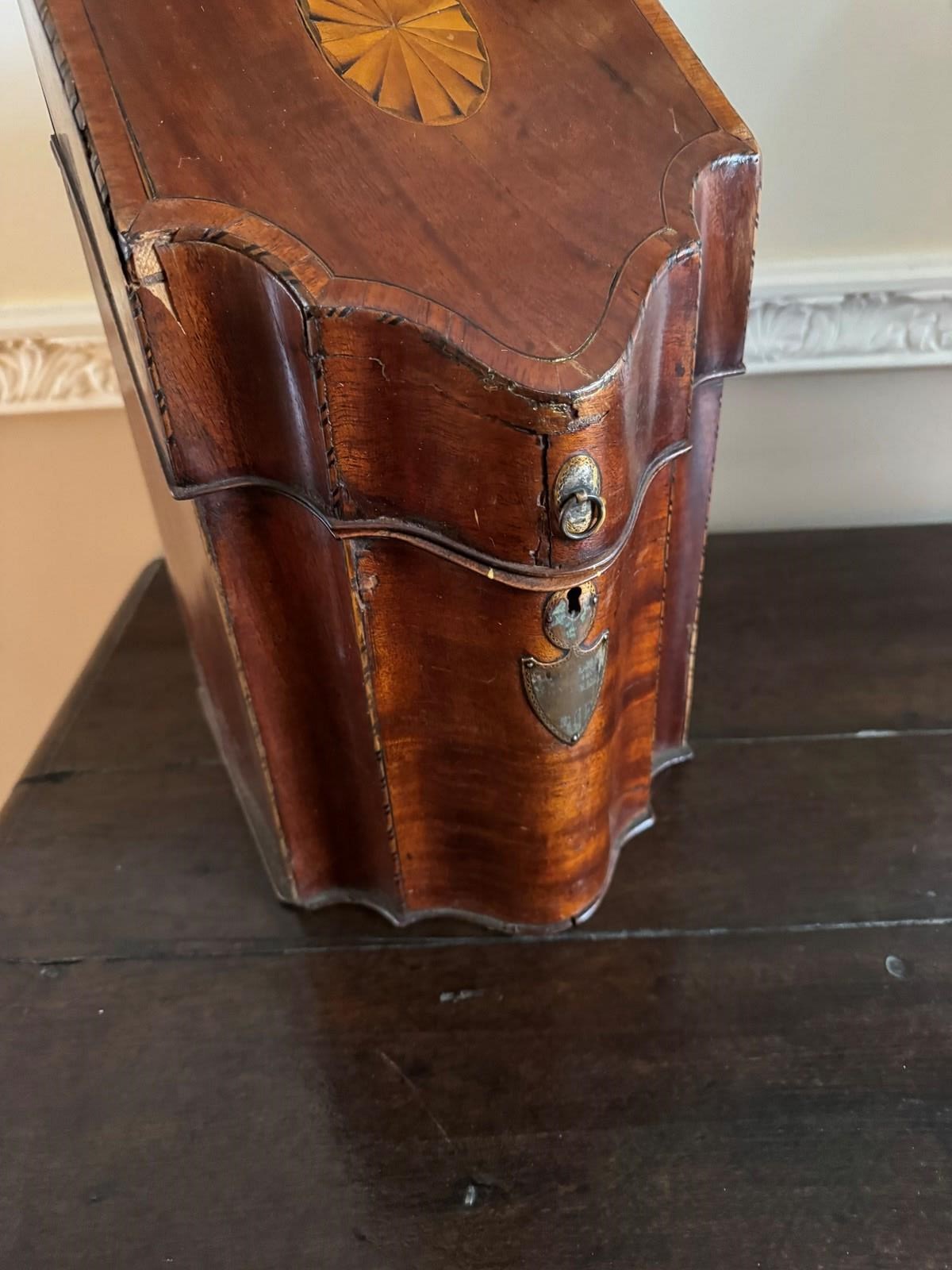 A beautiful mahogany and satinwood inlayed 19th century knife box. In need of some minor restoration, which should be visible in the photos.