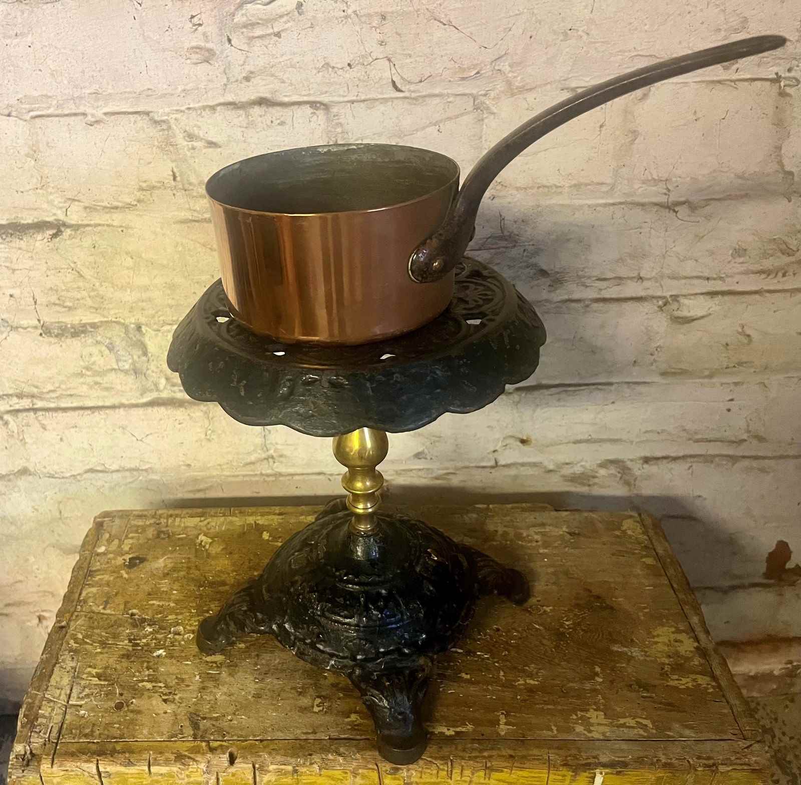 A very nice brass and cast iron trivet from the 1940s, very decorative and practical.