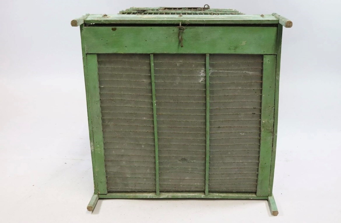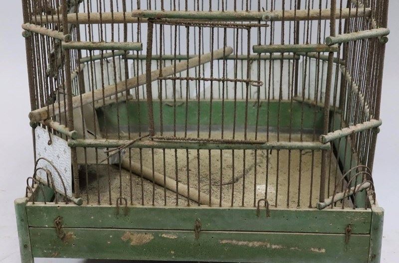 A wonderful 19th century wooden framed bird cage with original paint and fantastic patina.