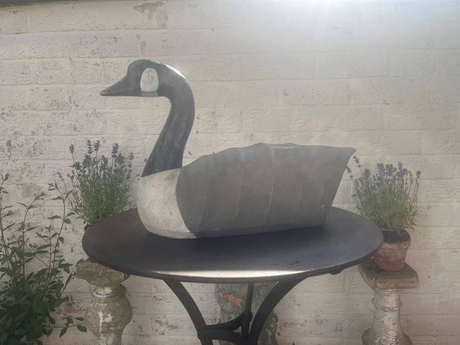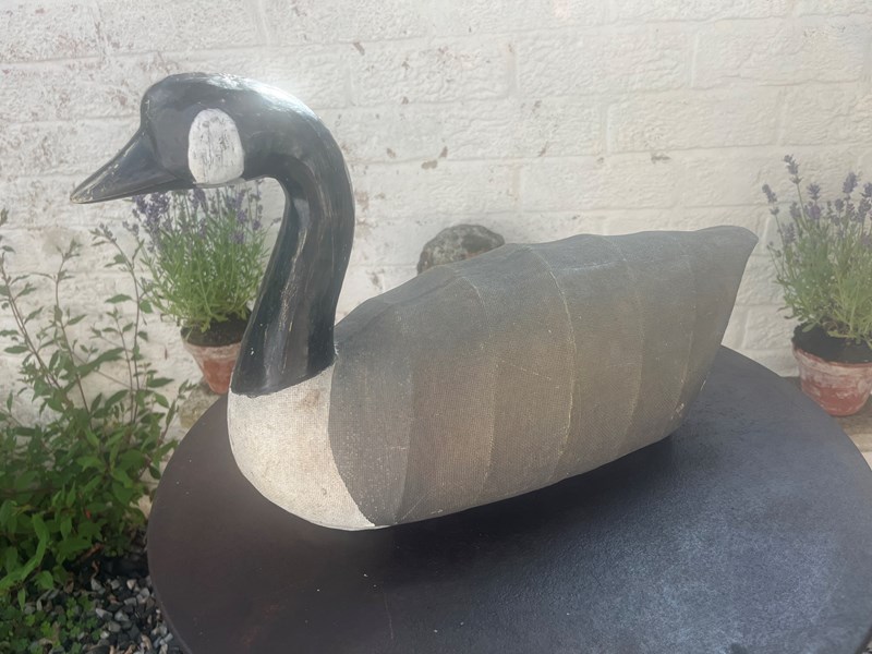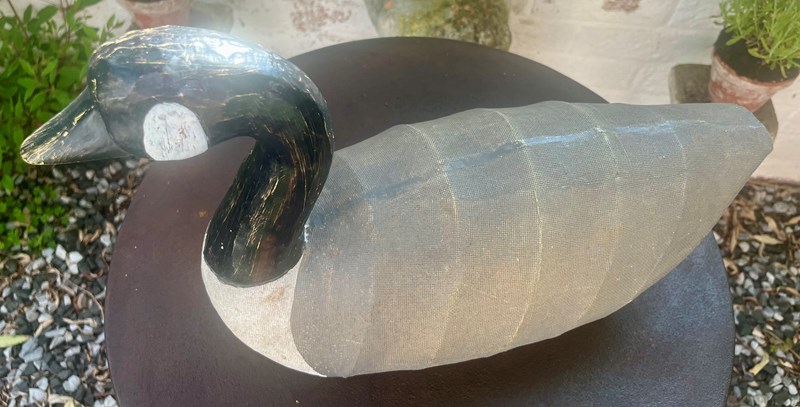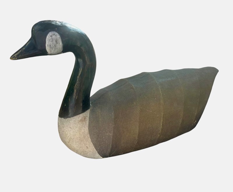 A canvas Decoy Goose with wooden head.