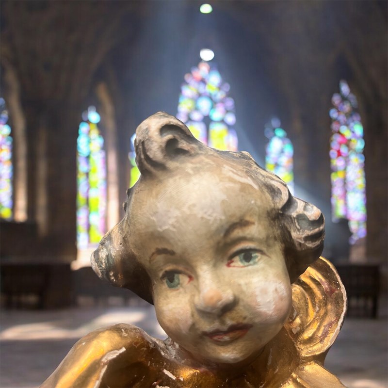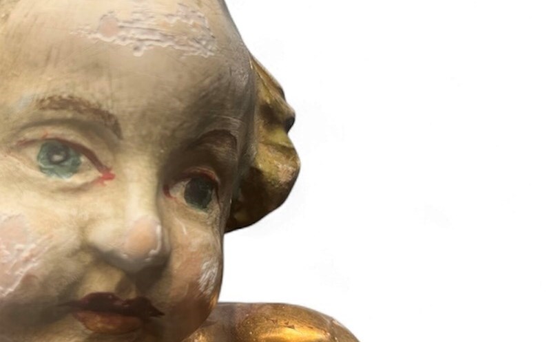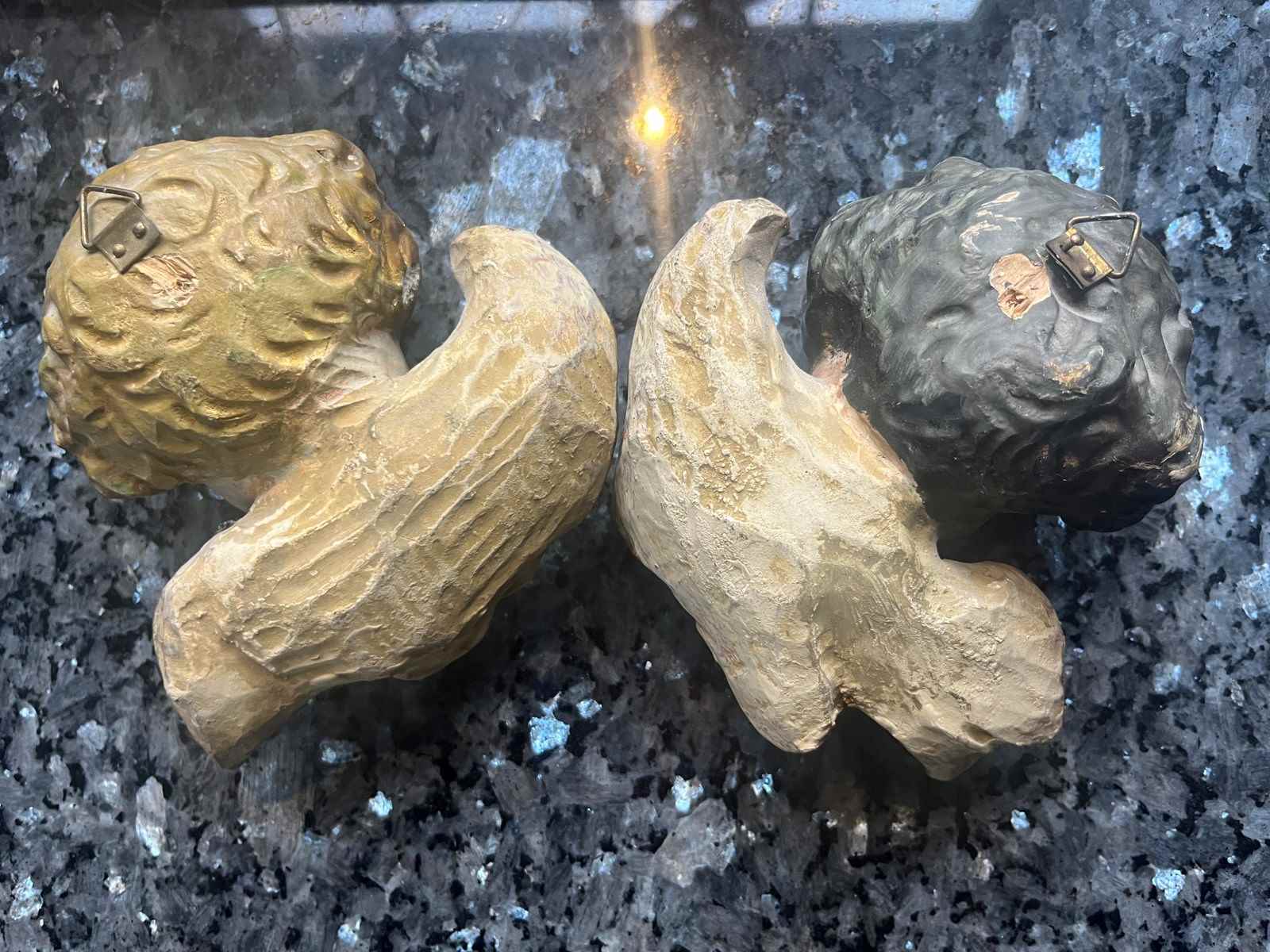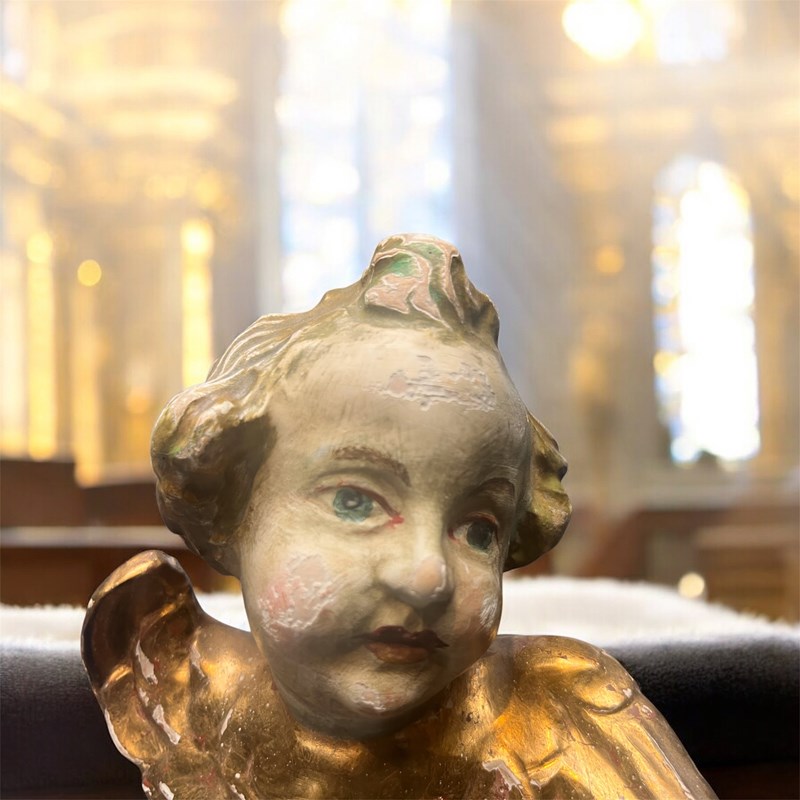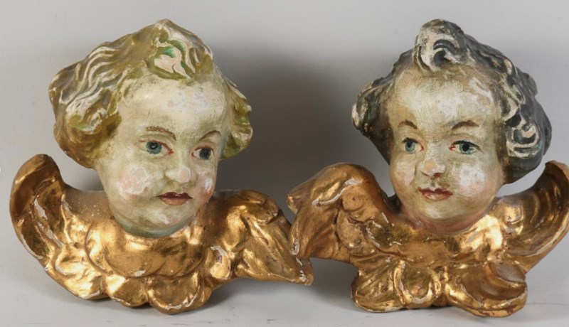 A pair of giltwooden angels in nice original condition, a little paint loss due to their age,