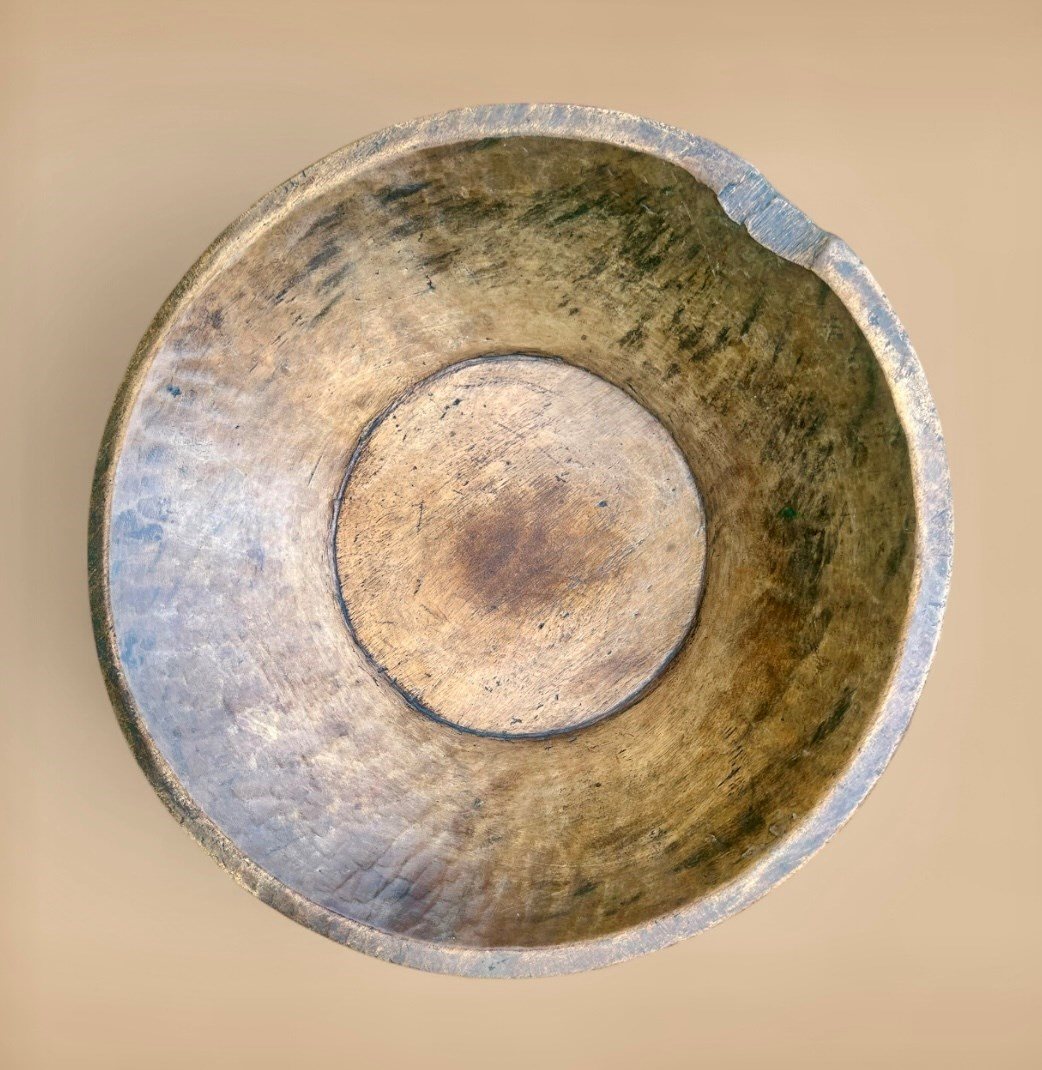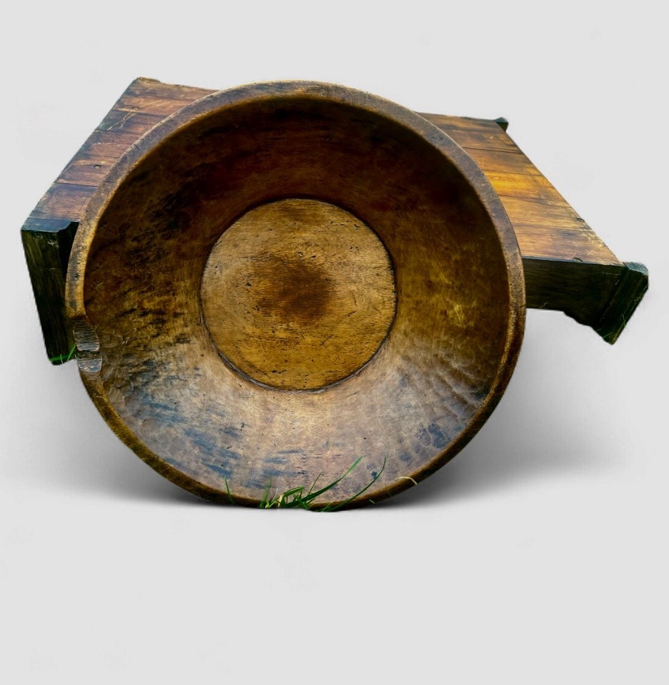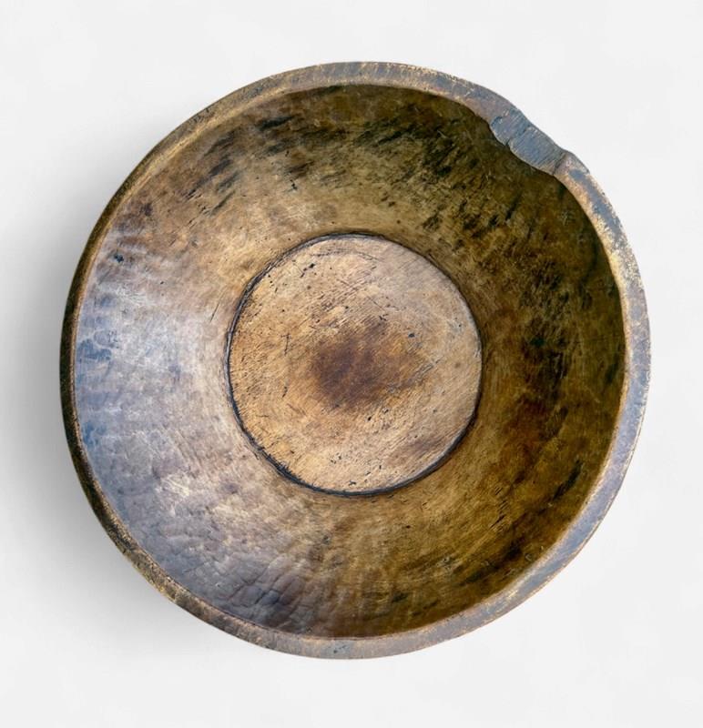 Late 19th century carved wooden dairy bowl, nice patina , cream would have been used in this.