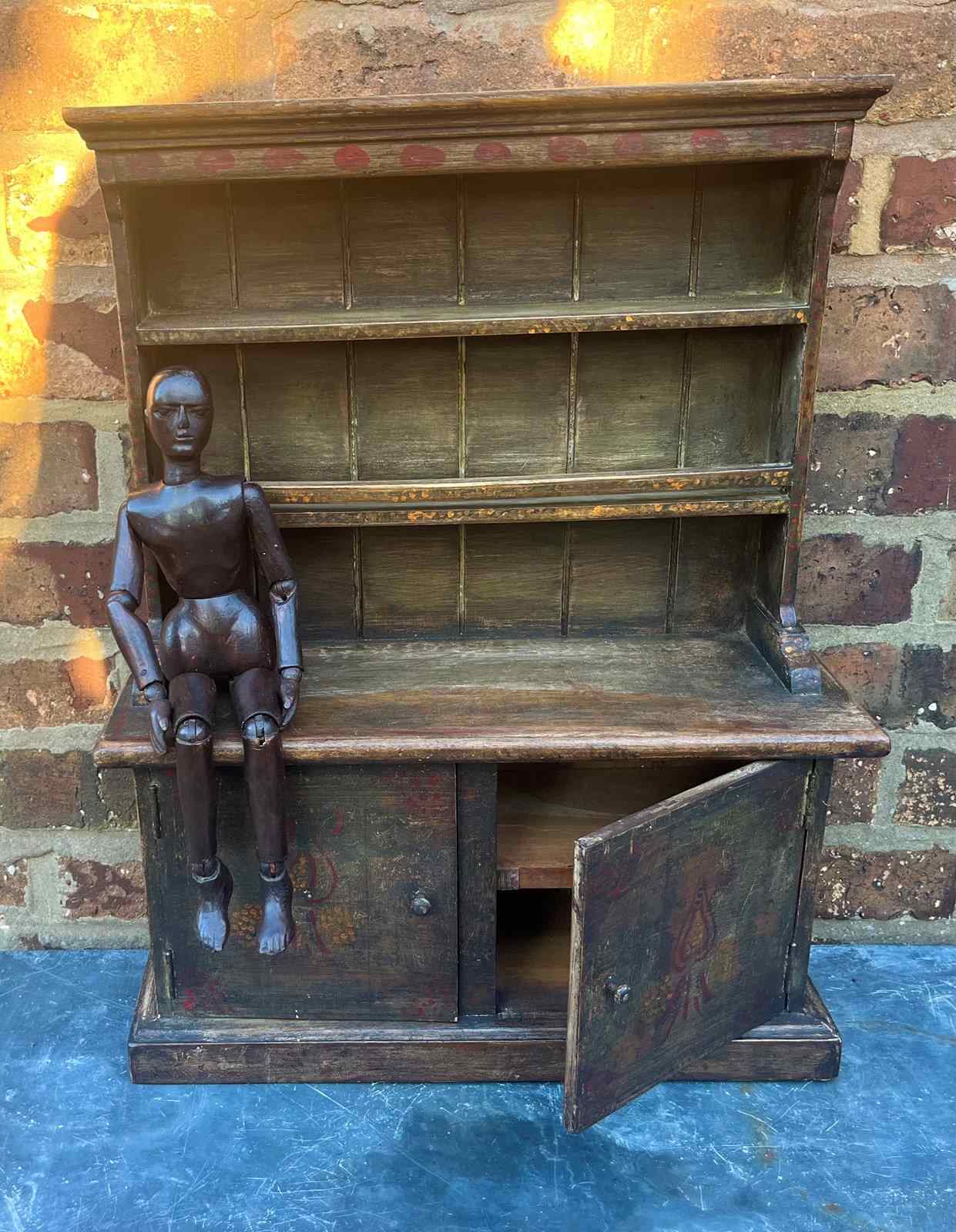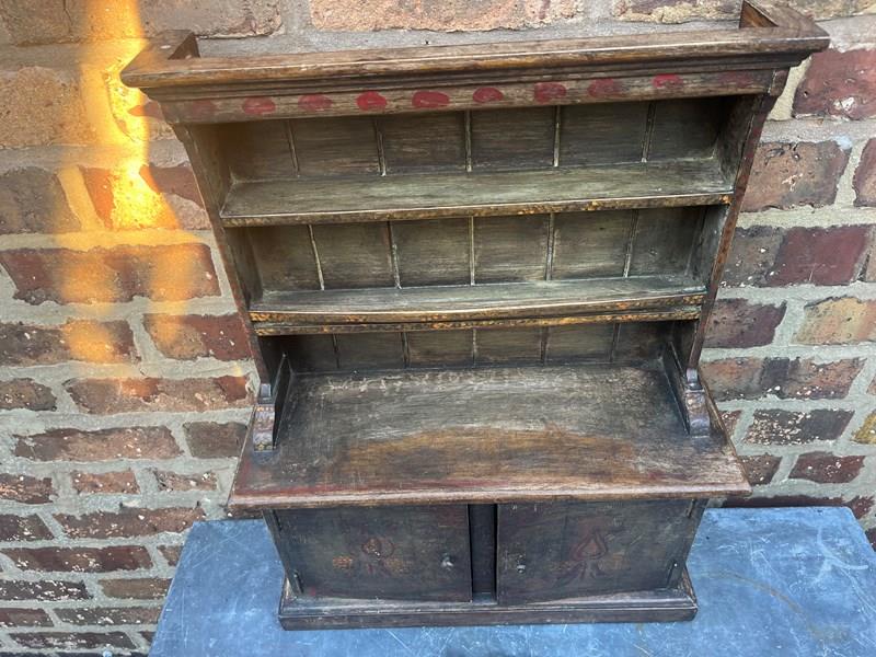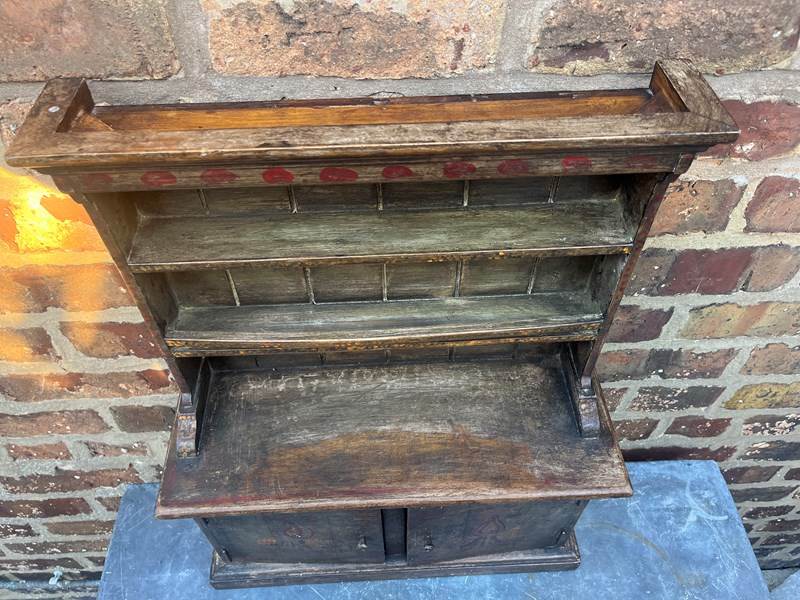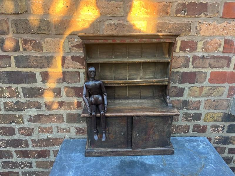 A mini welsh dresser maybe from a play house, beautiful folk art and very well made.