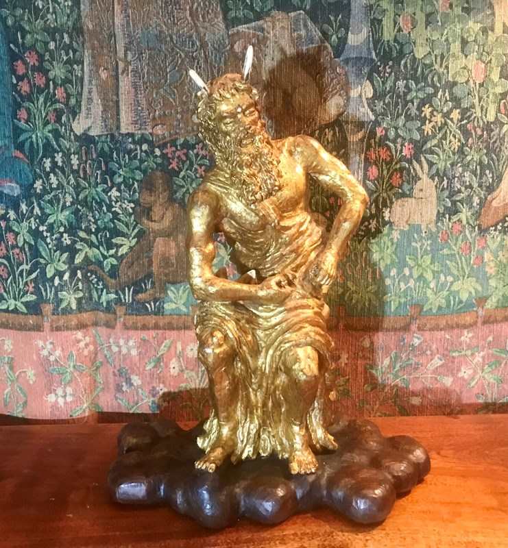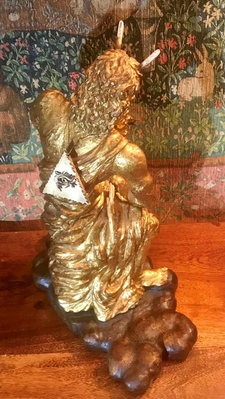 A gilt wooden ornament or statue carved Moses with Horns figure I believe by a Flemish designer J.Golbes.