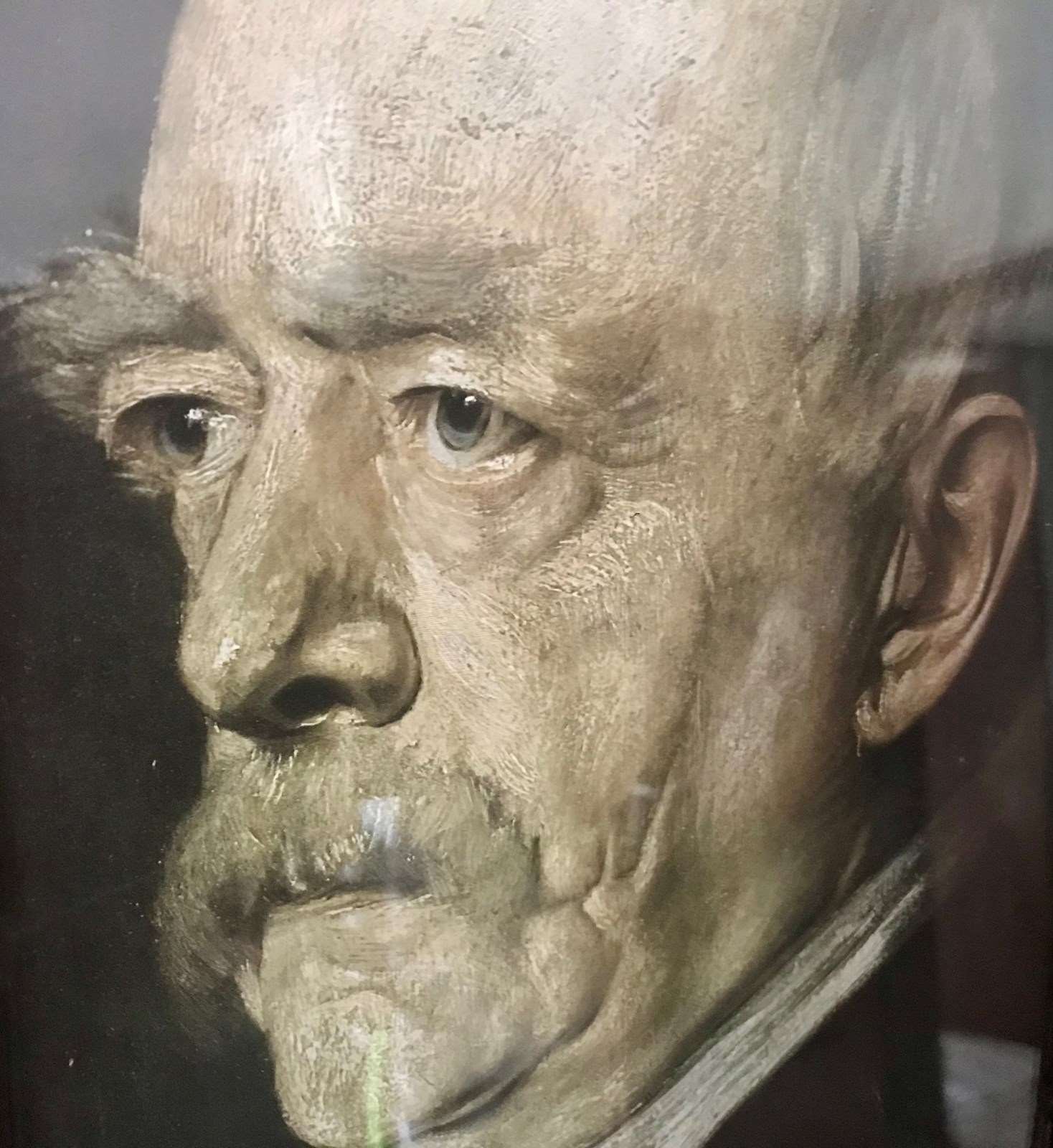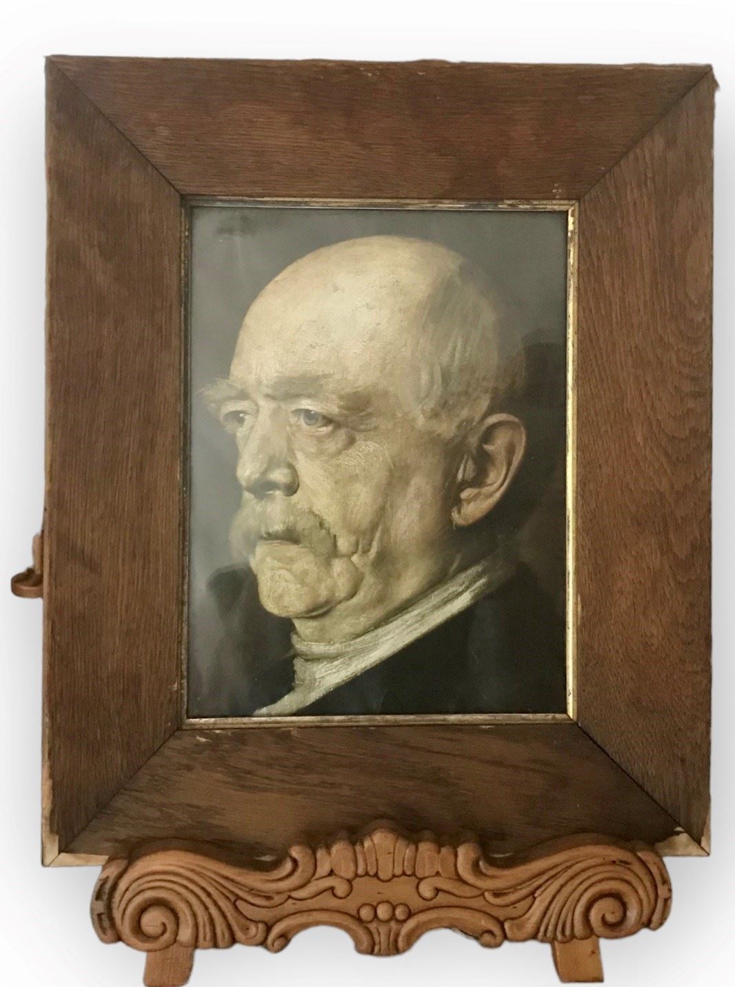 Wonderful wall art depicting a serious elderly gentleman behind glass. BISMARCK