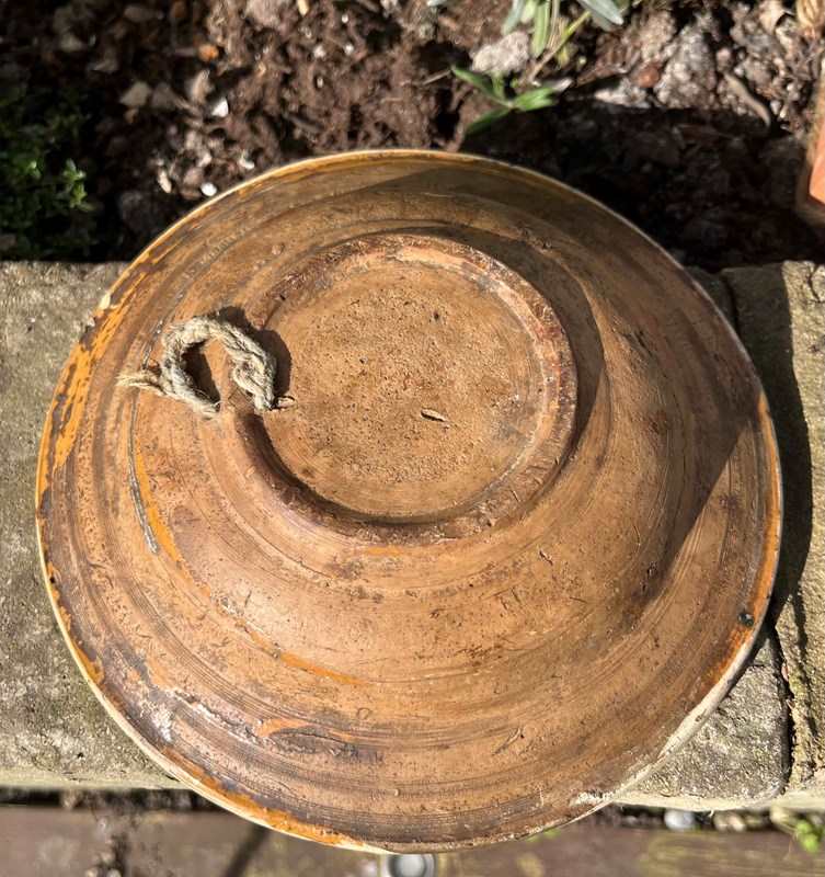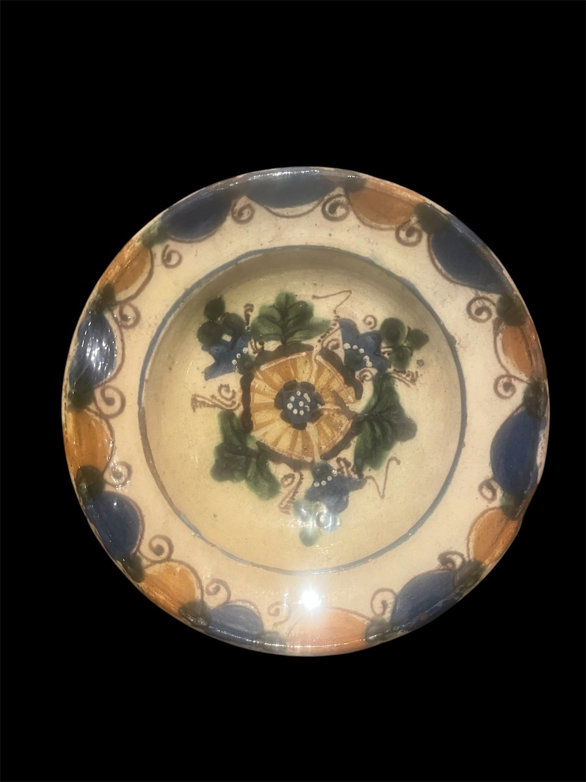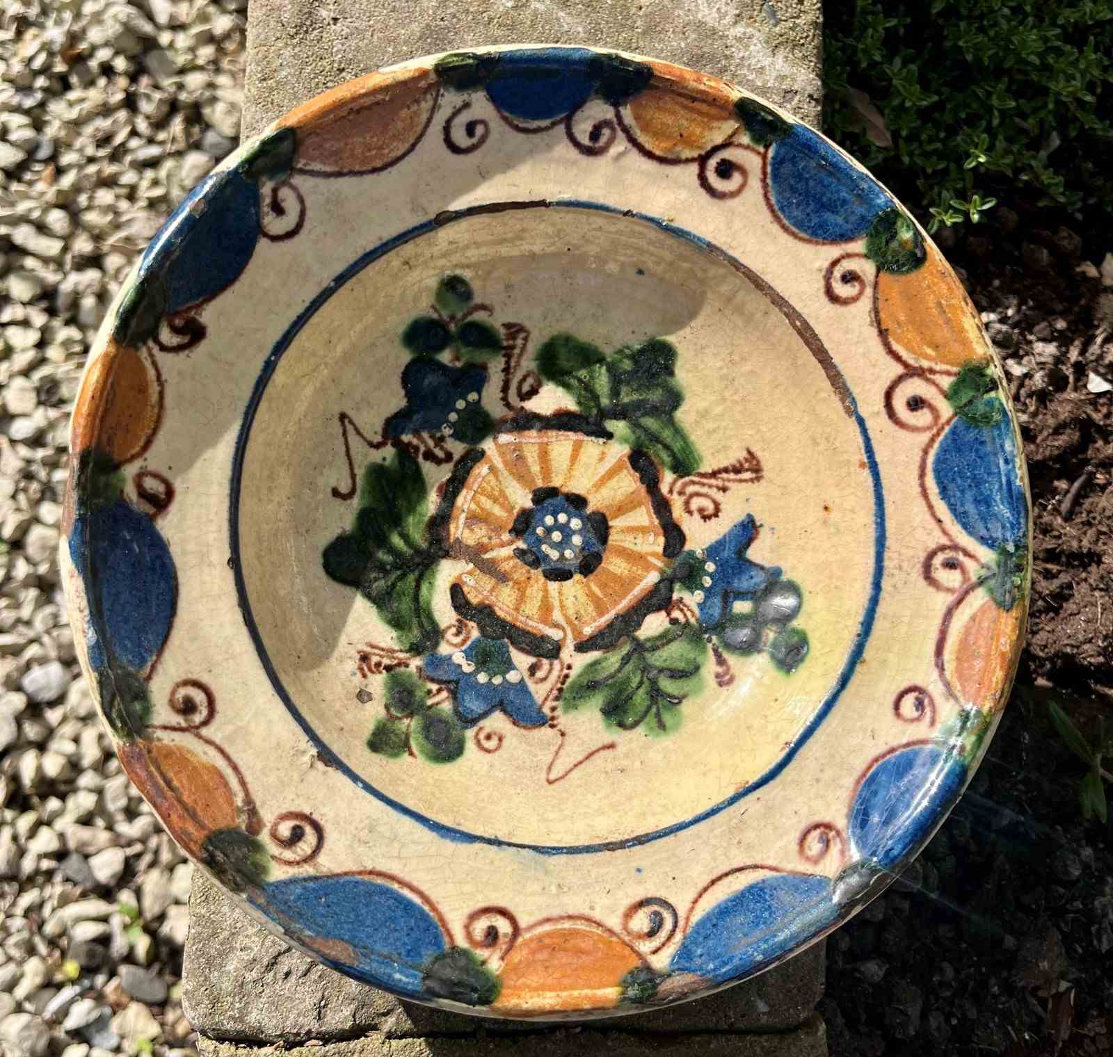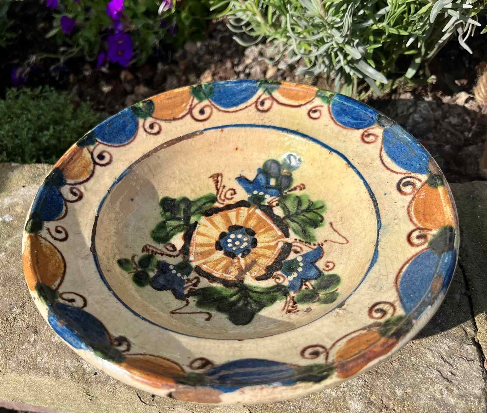 A beautiful 19th century or earlier hand painted glazed slipware bowl from Tirol on the Swiss border.
