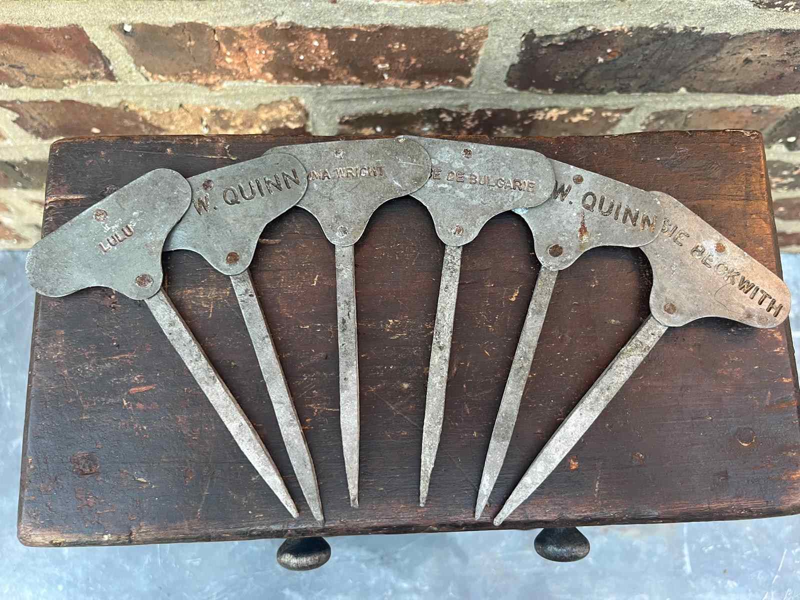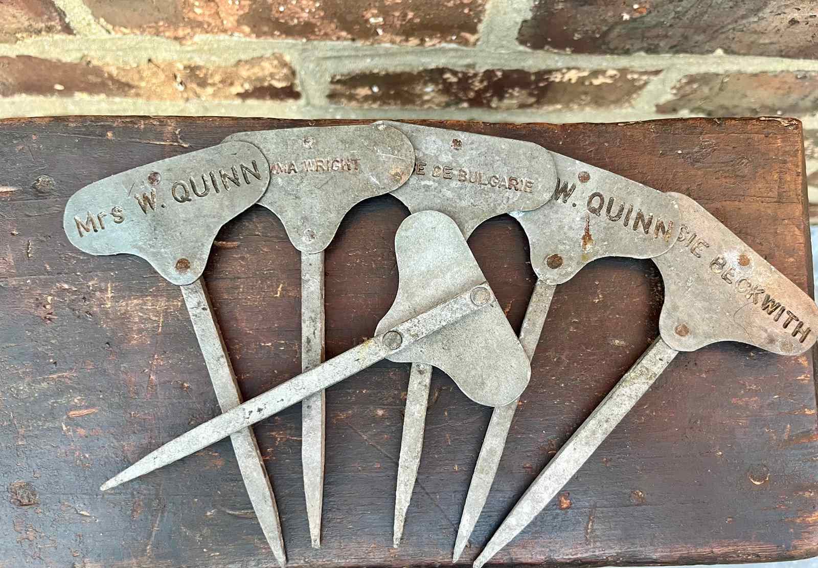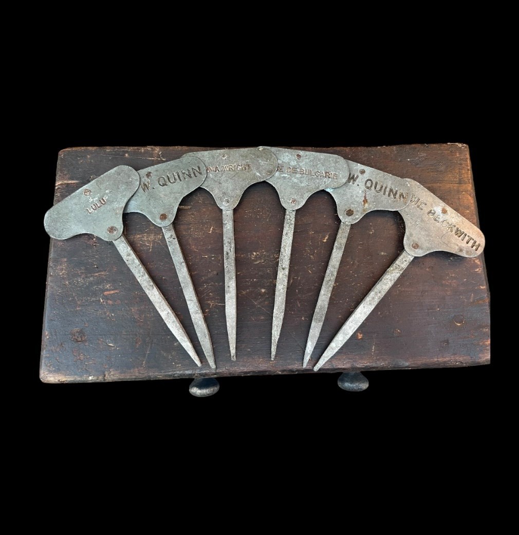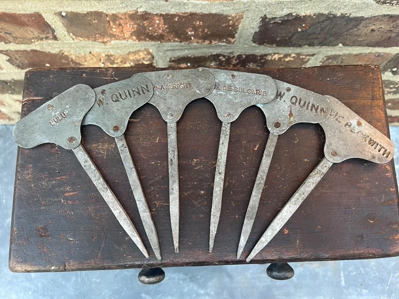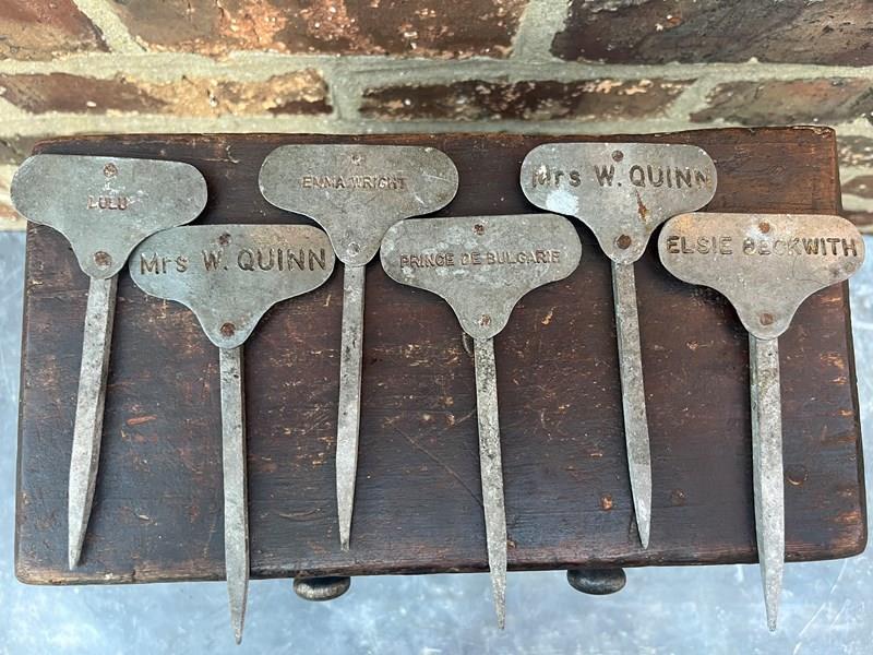 A beautiful set of six heritage rose markers. Believed to be estate made or from one of the larger flower shows.