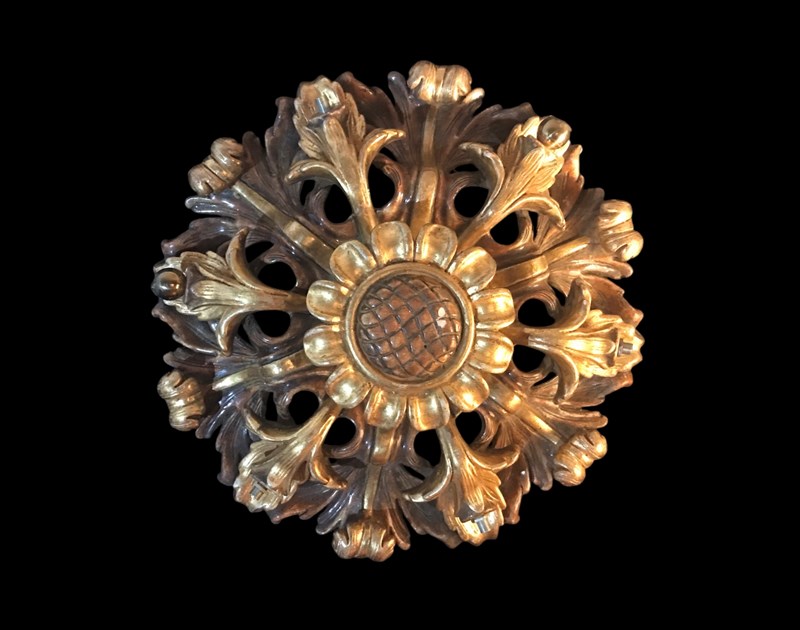 Italian giltwooden 1960/70s Firenze ceiling lamp.