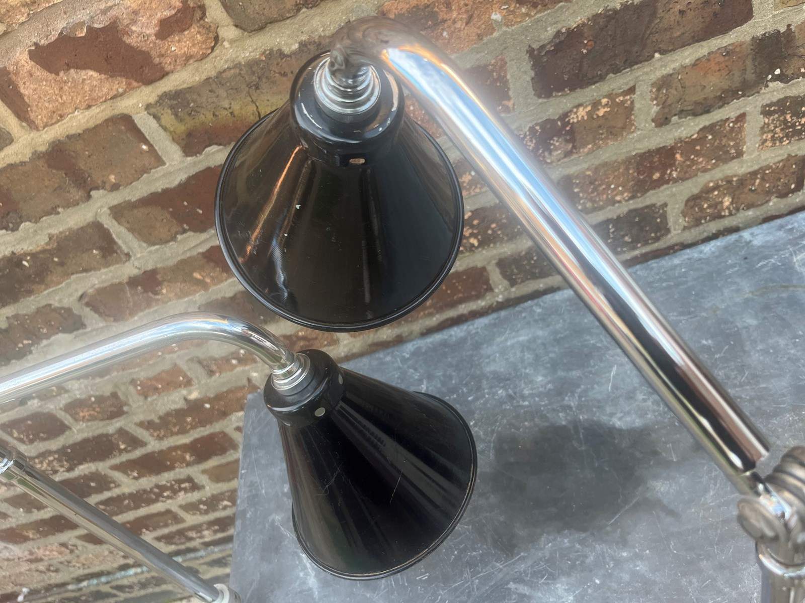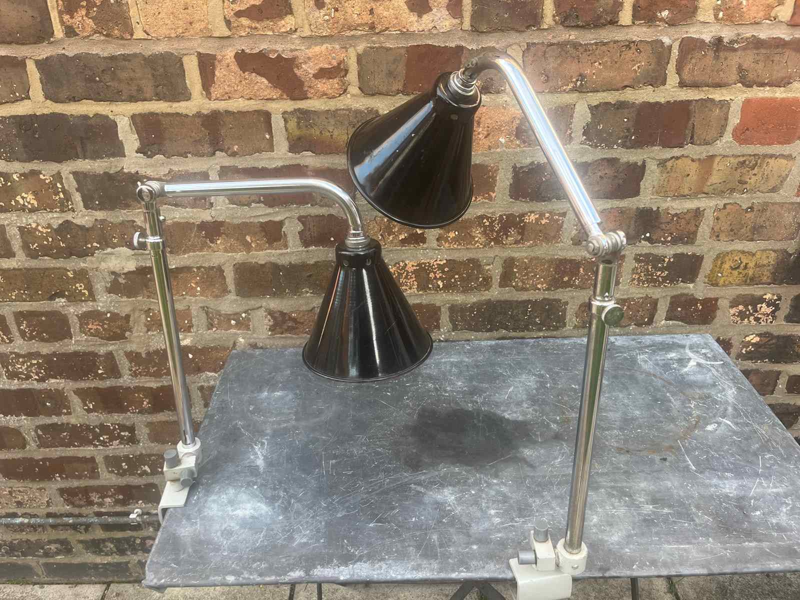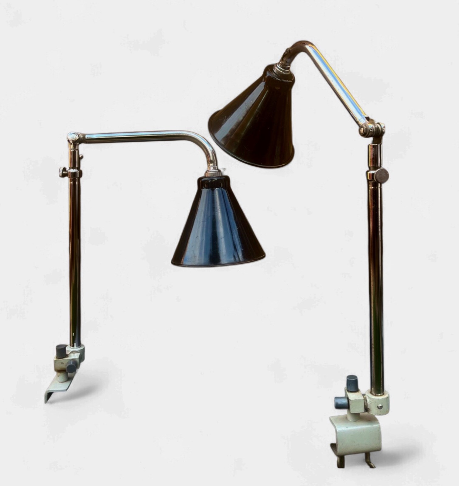 French made task lamps KI E KLAIR, table mounted and telescopic arms makes this a very useful tool. Ready to be wired up.slight scratches on the enamel.