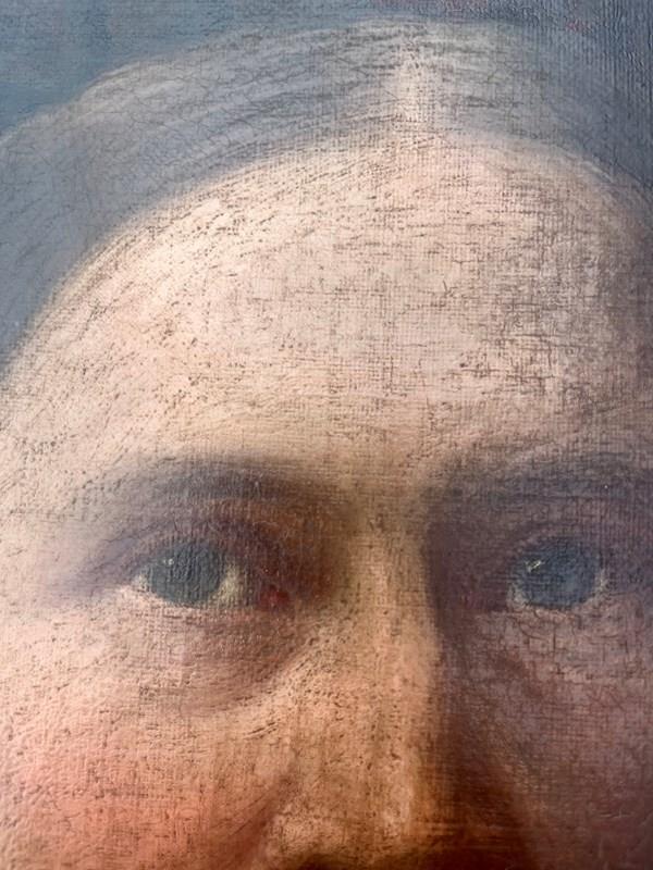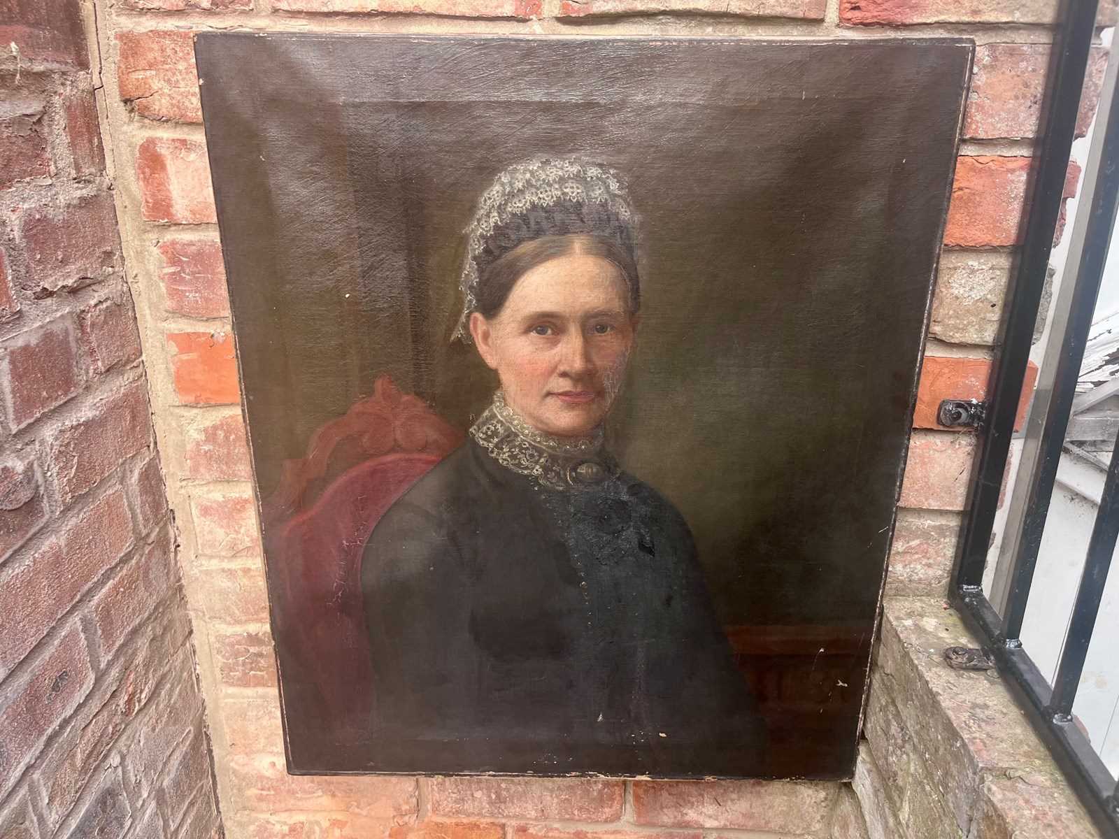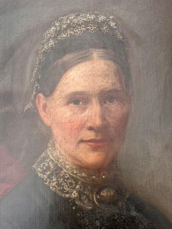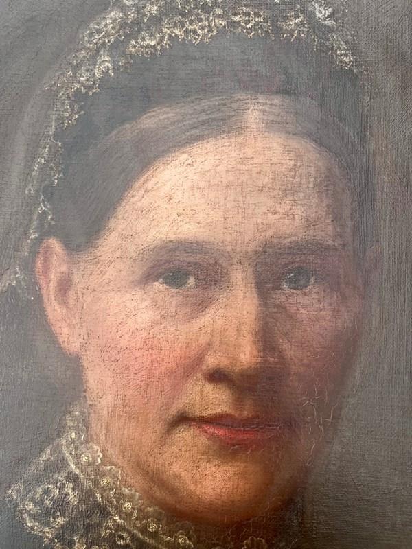 A beautiful oil on canvas portrait of a Lady I believe in Mourning.
