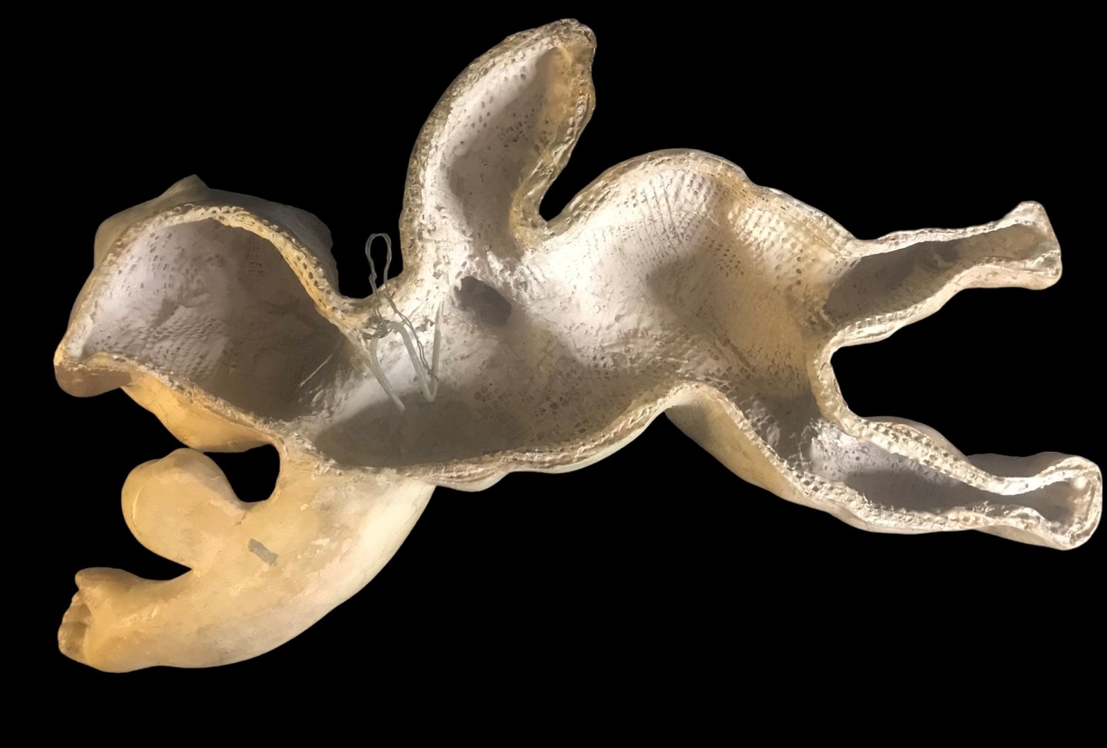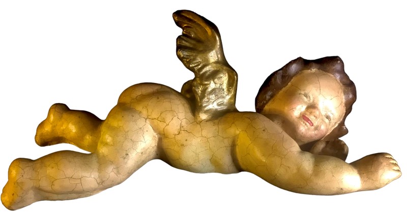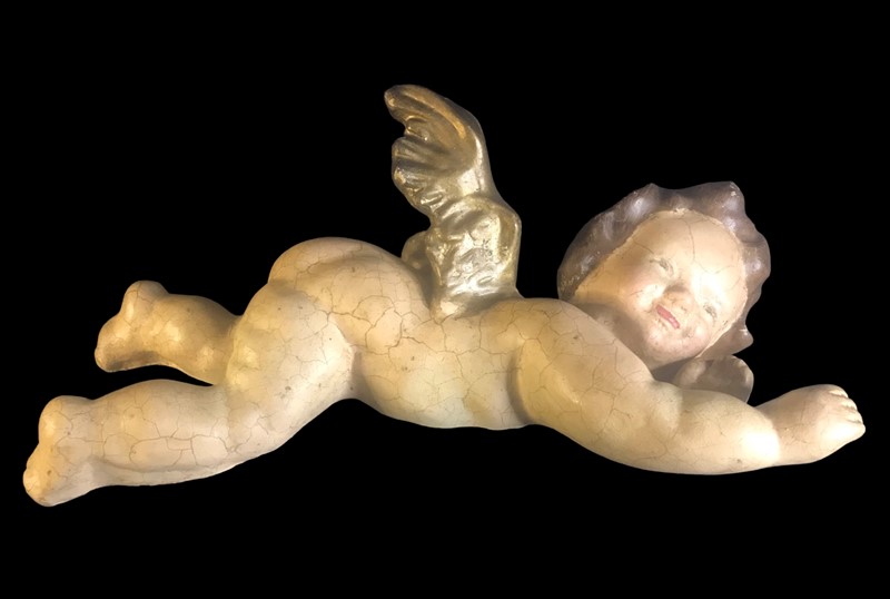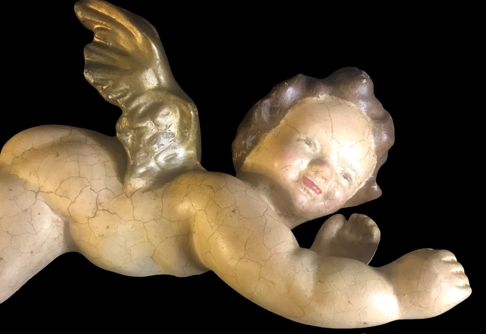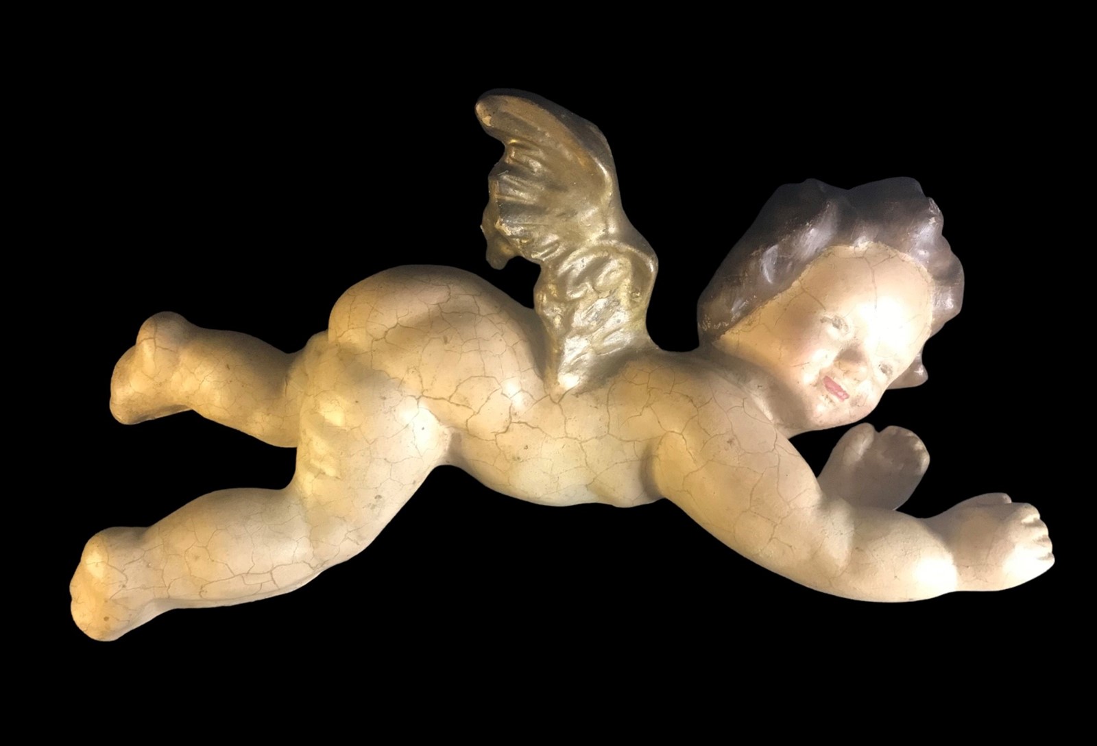An unusual large putti angel, commissioned in Germany amongst others from a church in Nordrheinwestfahlen in the mid century unusually made in a type of fiberglass. This hang high on the wall with others apparently and was considered much hardier than the usual wooden examples that are normally much earlier. Sourced from the church.