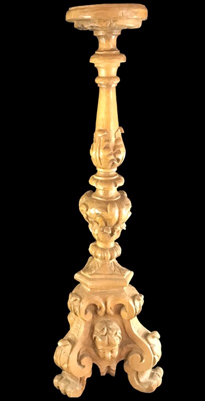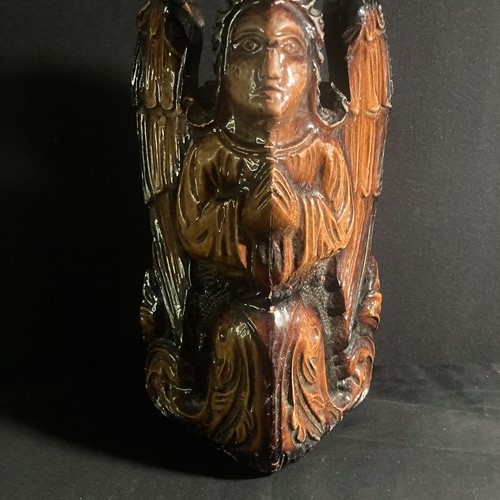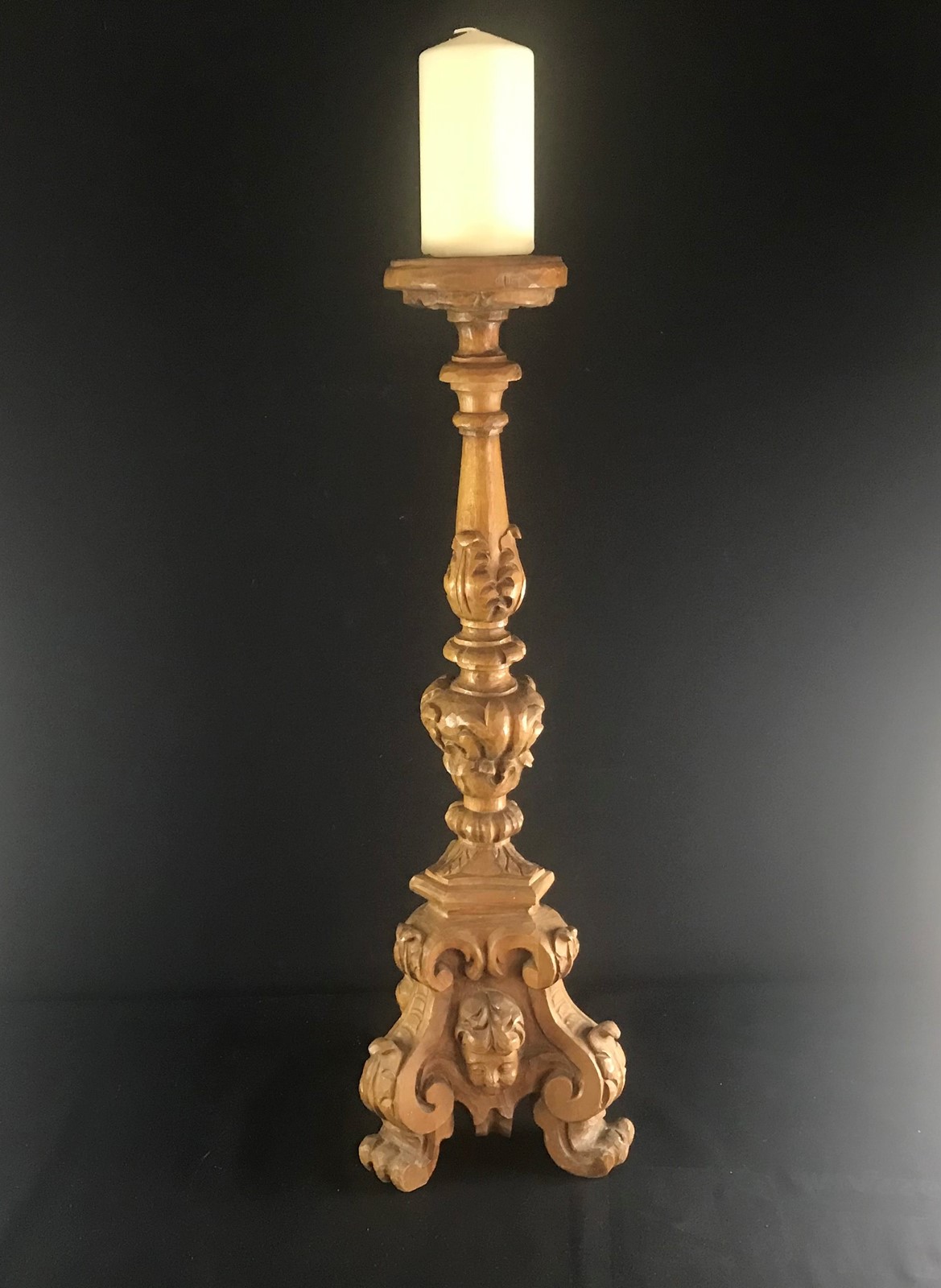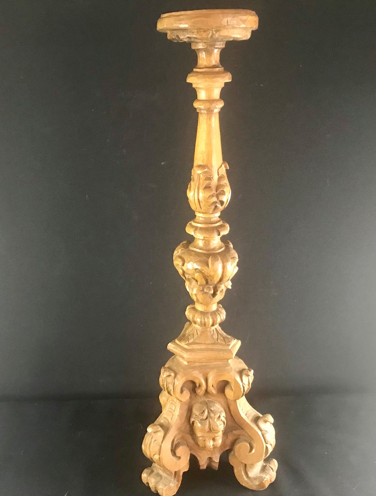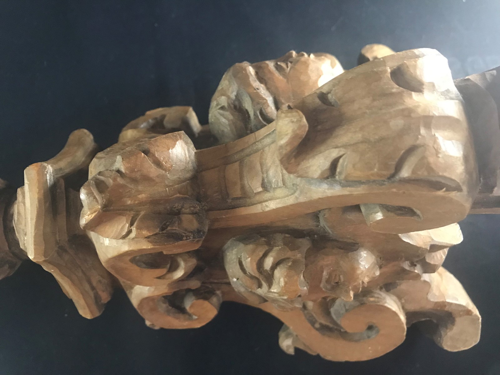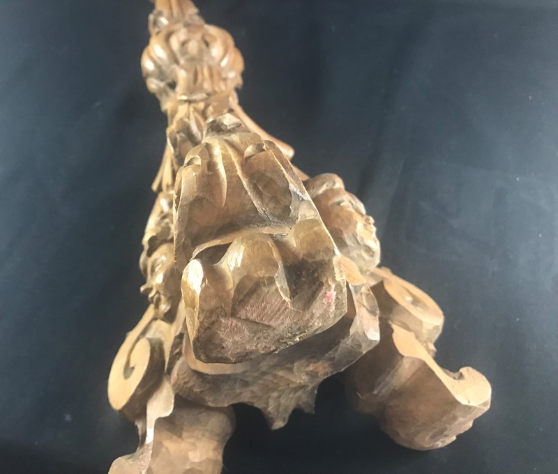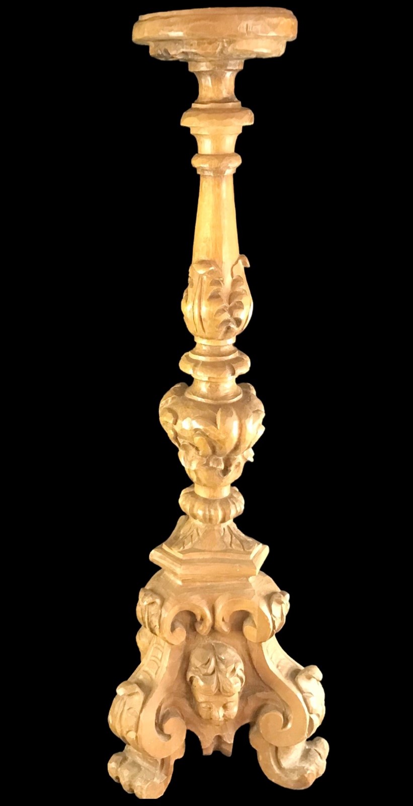 A large carved wooden pricket depicting putties and very intricate carvings. A beautiful alter piece. Un painted.
