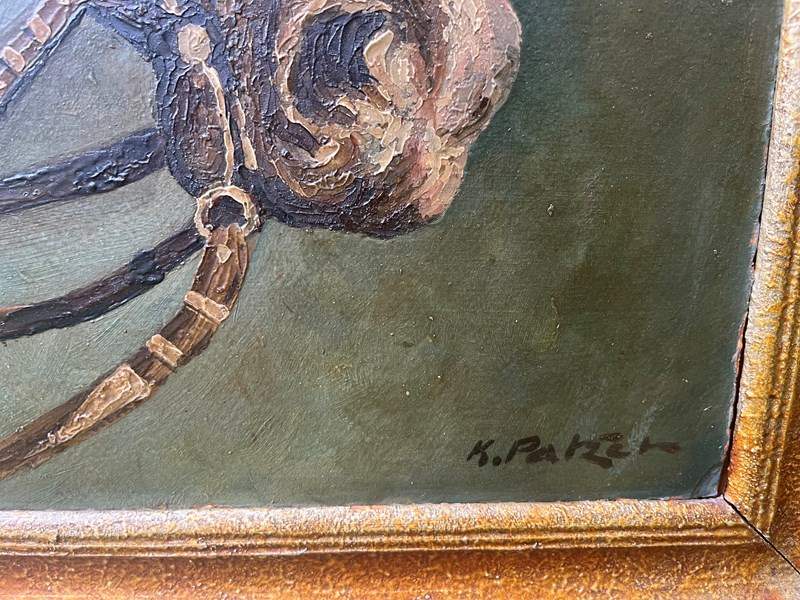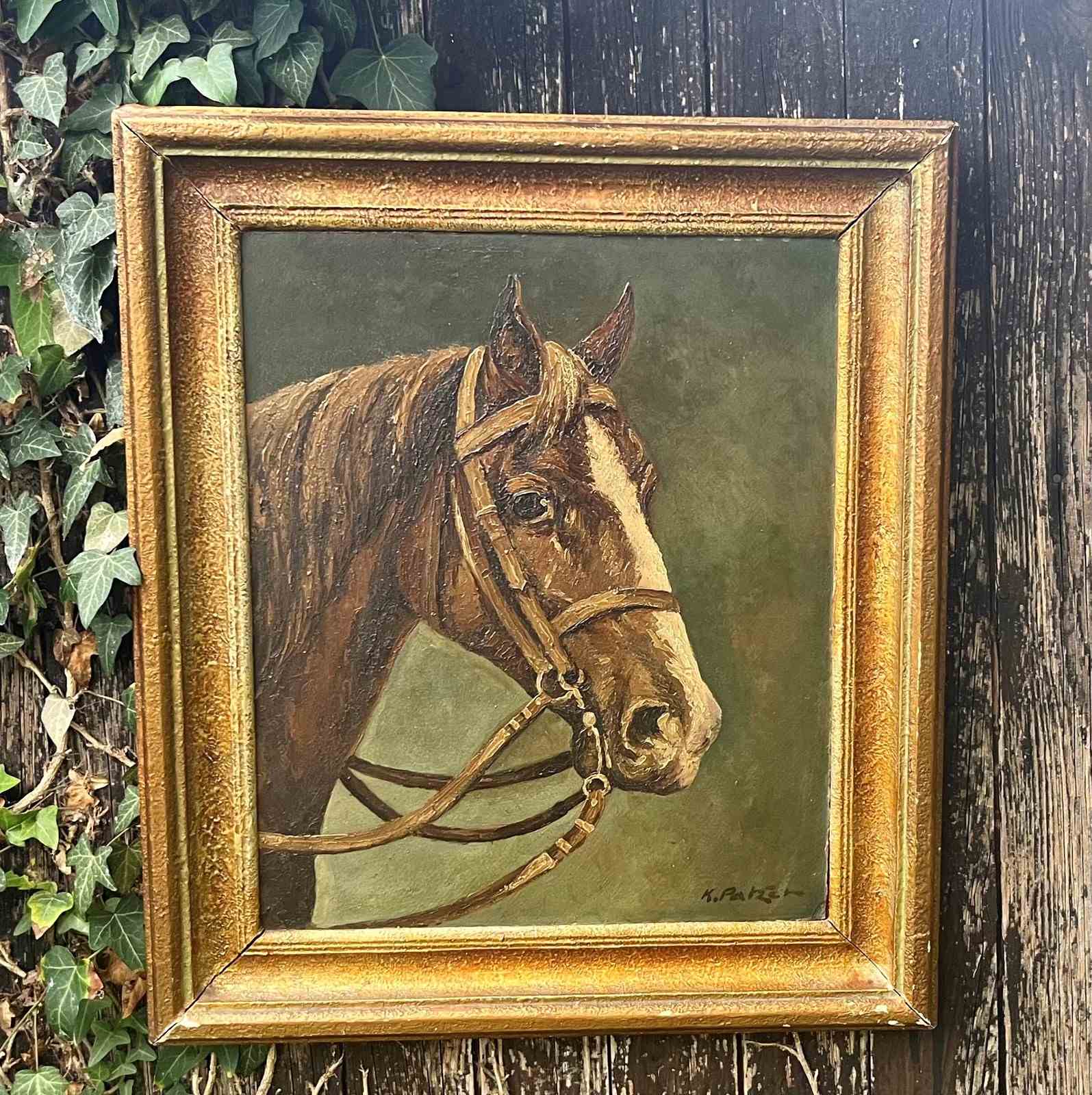 K.Patzen German artist. A nice decorative painting on board of a horse portrait.