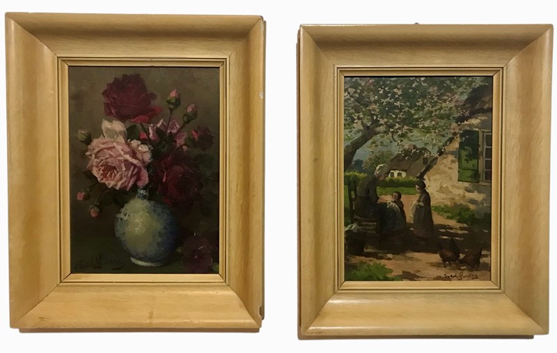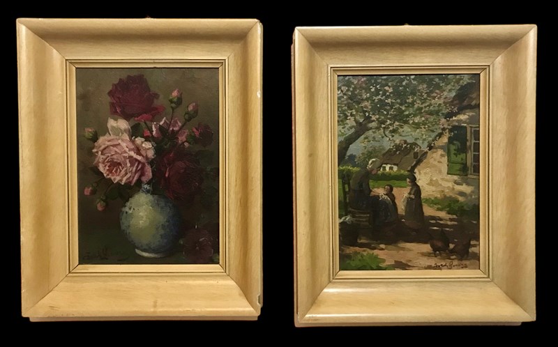 A Pair of oil on board unusually framed in a light wood but very nicely painted by the artist Josef Gindra 1862-1938 a Dutch artist with some paintings in museums.