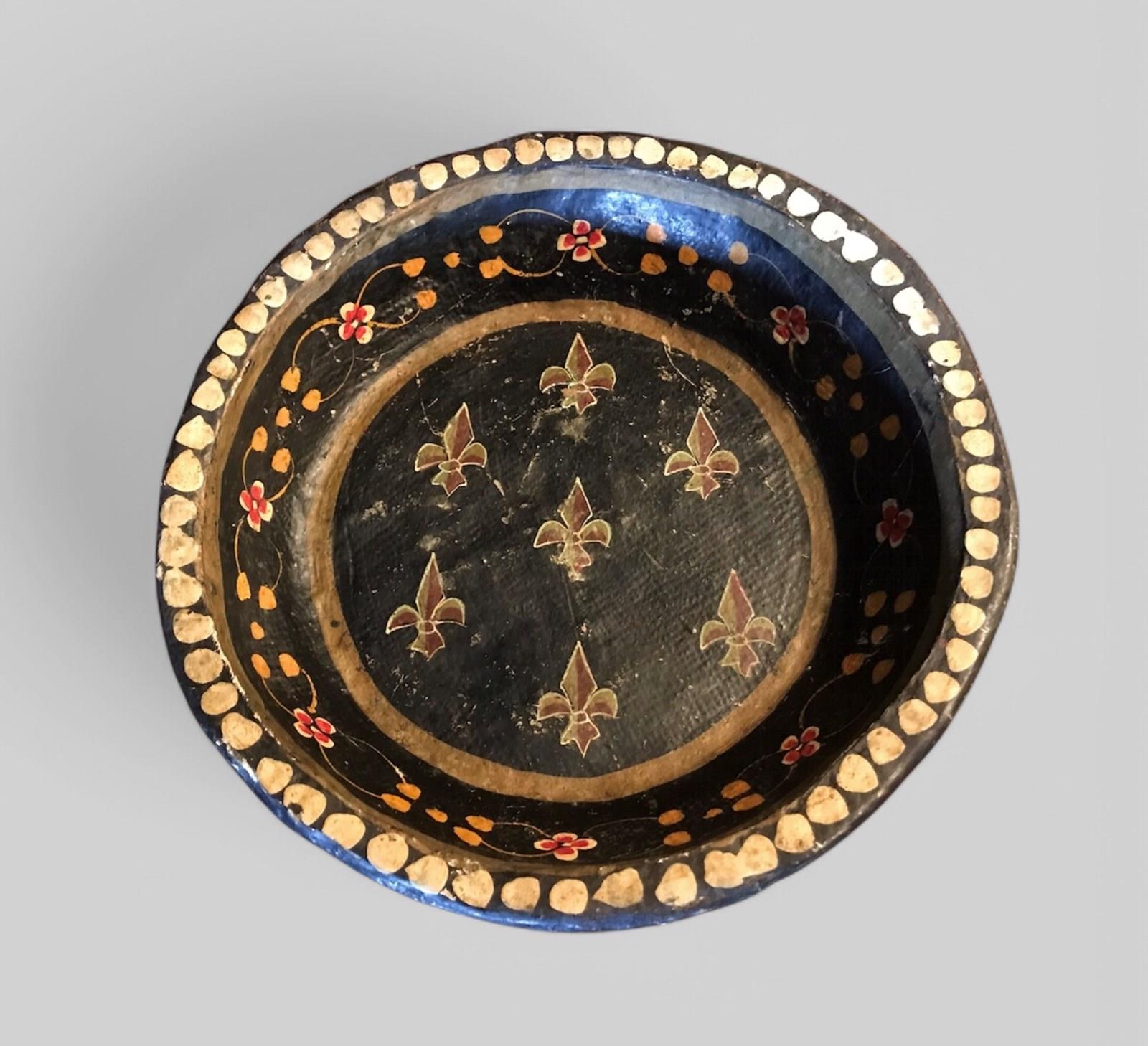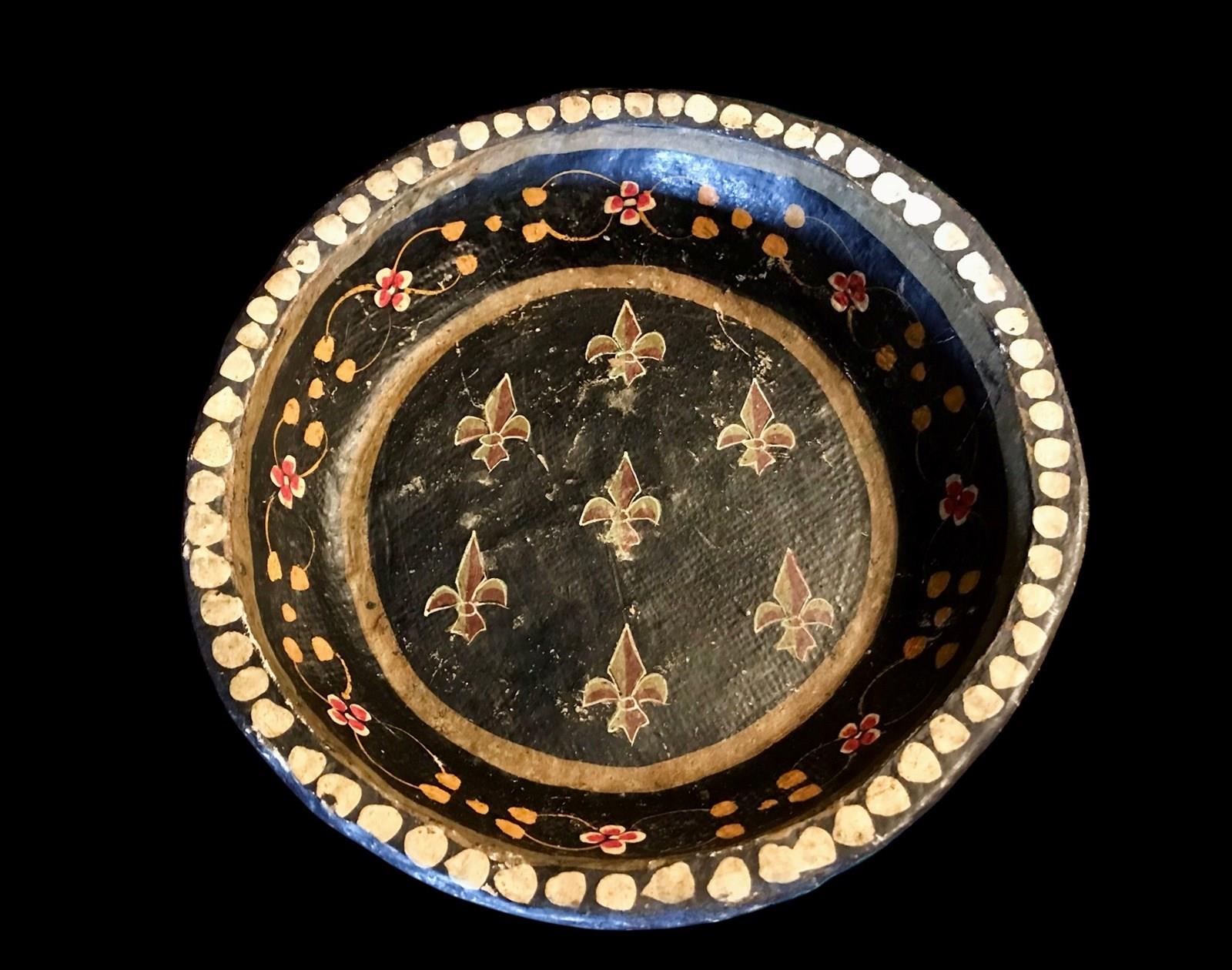 1920s maybe earlier Dutch hand made hand painted papier-mâché dish or bowl. Very intricate and beautifully painted design and colours from bygone days.