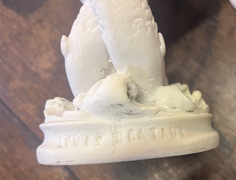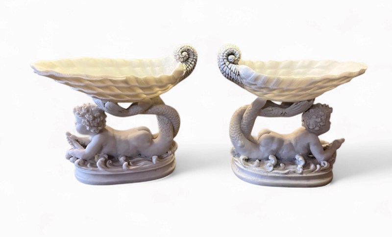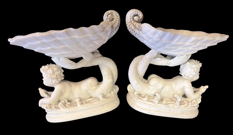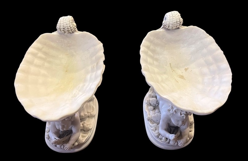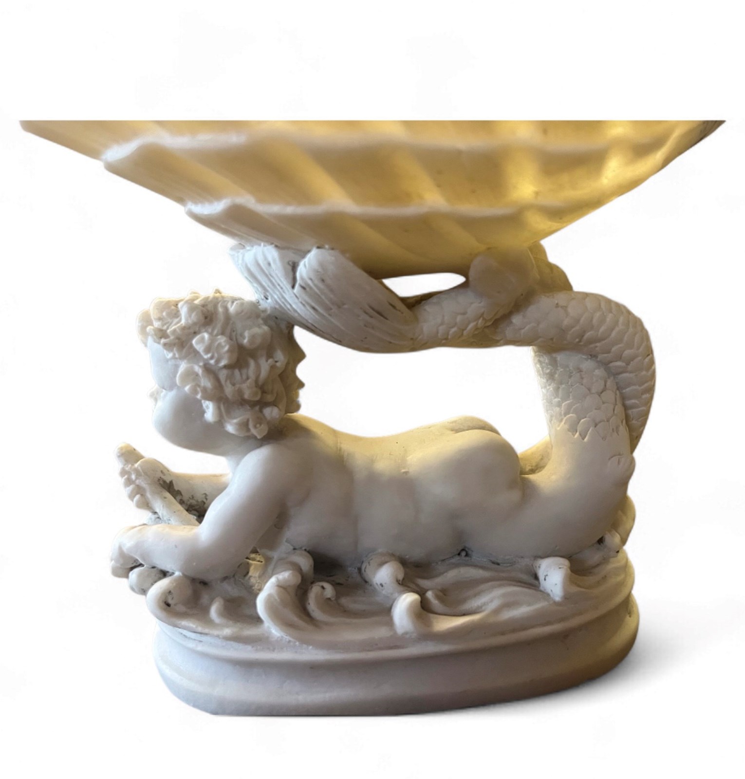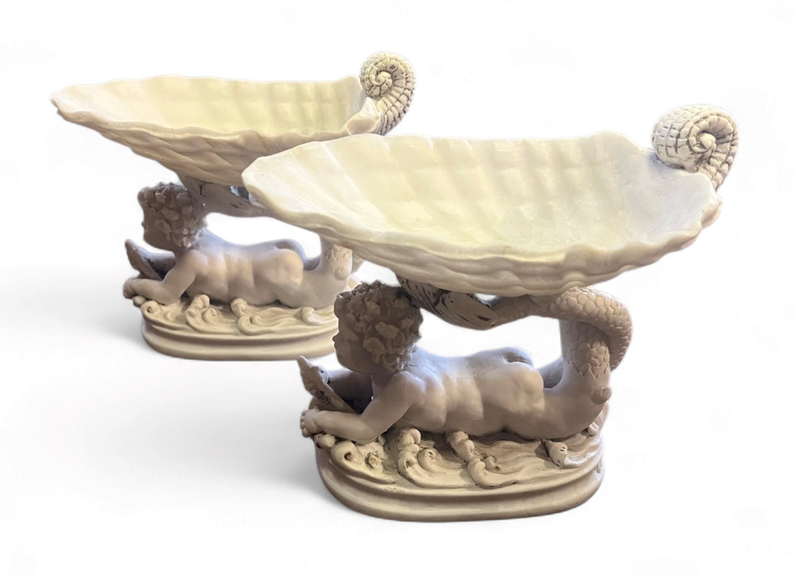 A pair of Victorian plasterware dishes with cherub/mermaid bases.