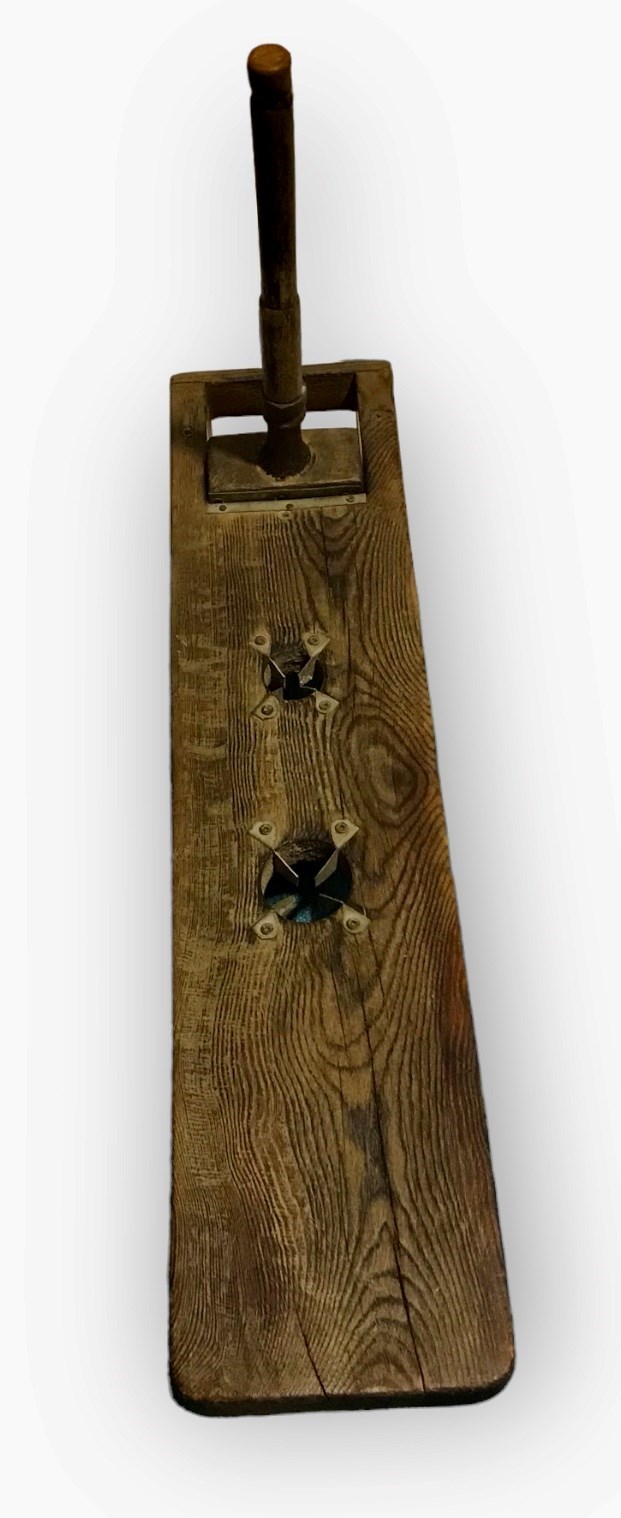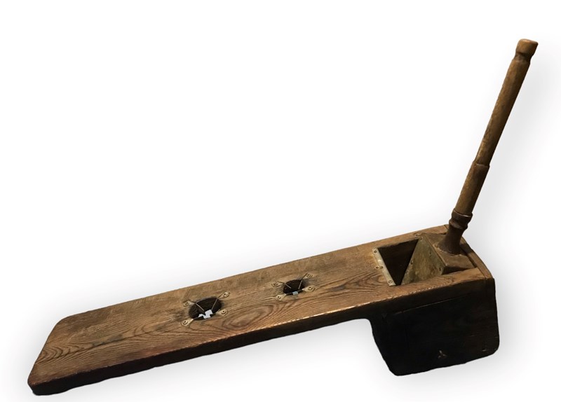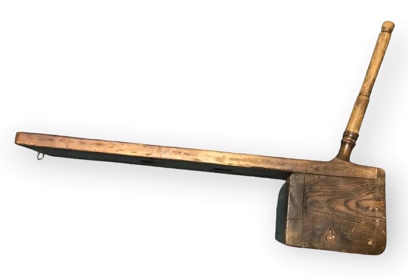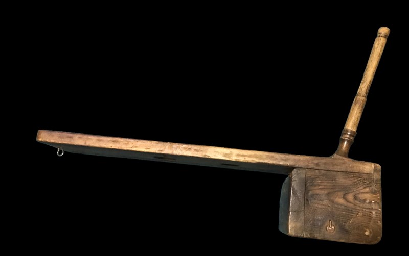 A rustical Spanish wooden olive press which can also be used to take out the stones, an interesting old piece of Spanish kitchenalia and very decorative and useful.