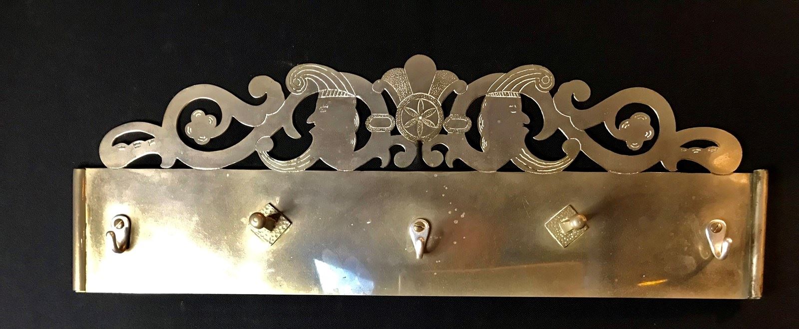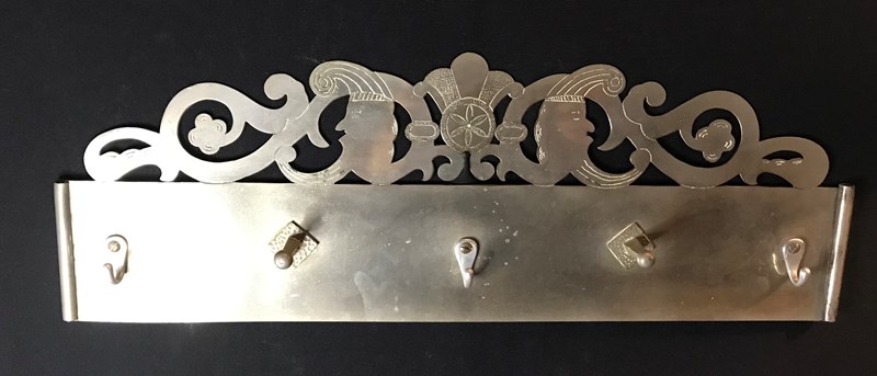 A simple scratch made steel kitchen hanging rack. A good size with jester emblems.