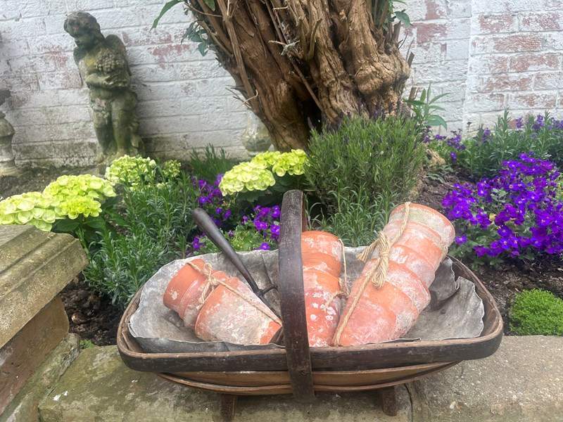 A nice Sussex trug perfect for spring unusually with a tin lining.