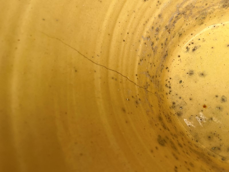 A chip on the lip and a slight crack in the glaze as shown doesn’t detract from the beauty of this 19th century bowl.