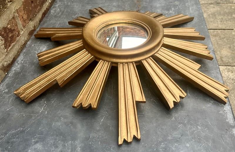 A nice convex giltwooden sunburst mirror from the 70s.