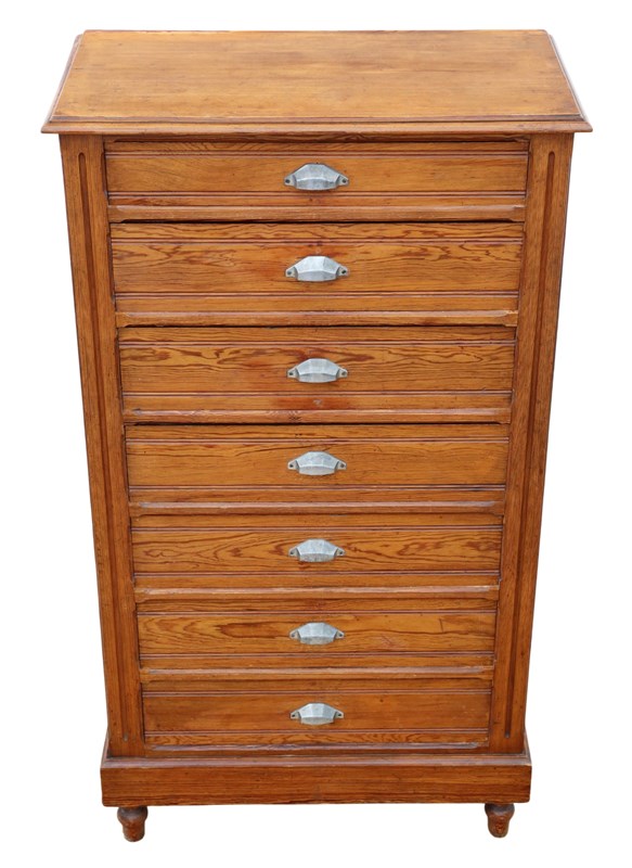 Antique c.1900 Pitch pine Wellington Chest of Drawers – Large Capacious Form, 7 Drawers