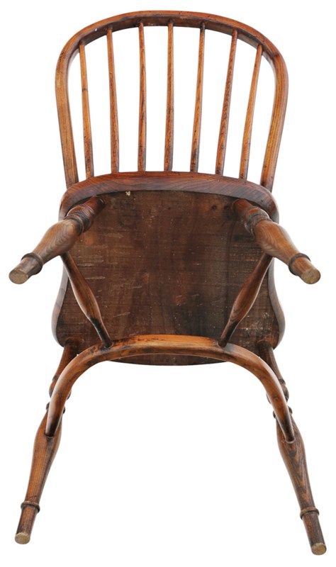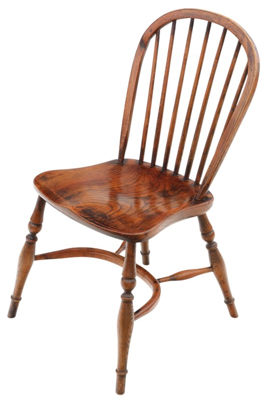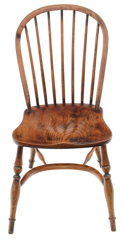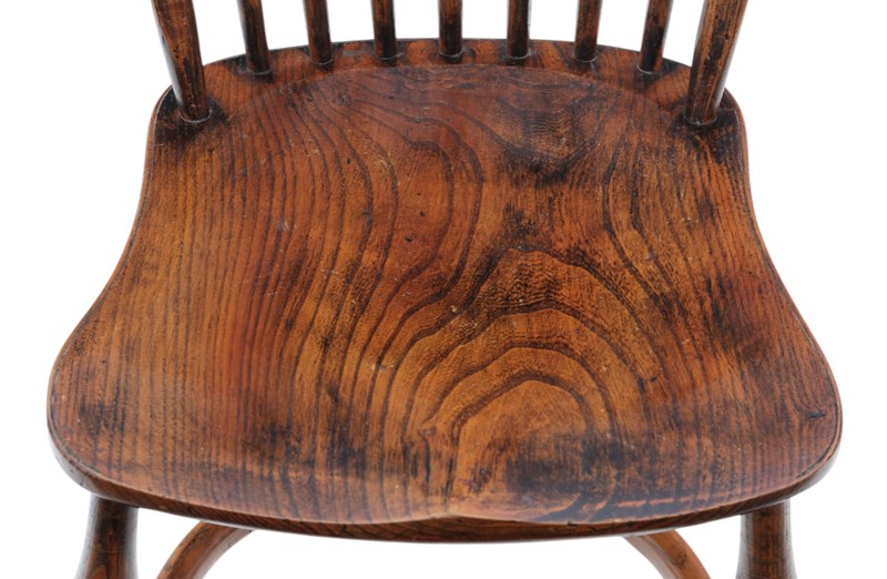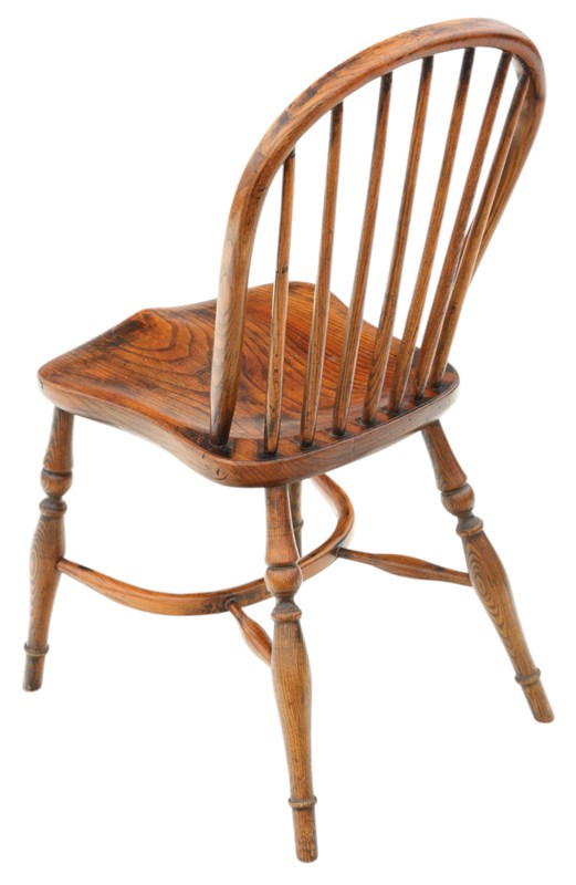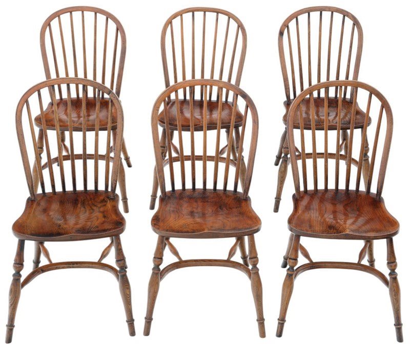 Antique Set of 6 Georgian Revival c.1920 Ash and Elm Windsor Kitchen Dining Chairs – Quality Craftsmanship with Sought-After Crinoline Stretchers