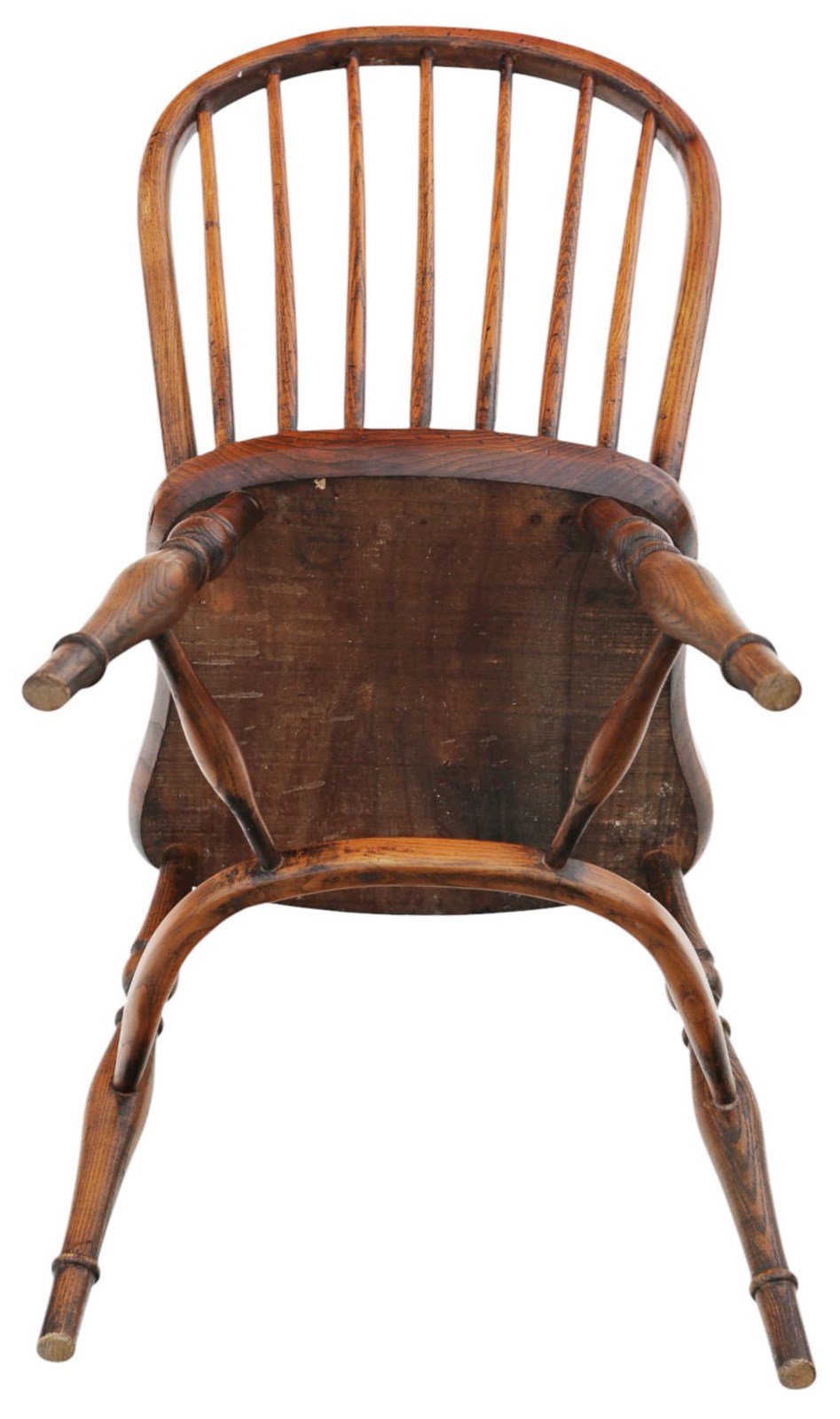Antique Set Of 6 Georgian Revival C.1920 Ash Elm Windsor Kitchen Dining Chairs