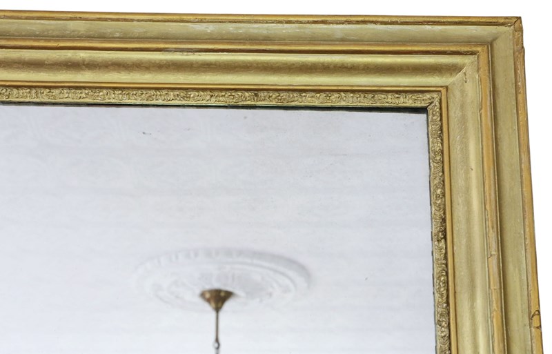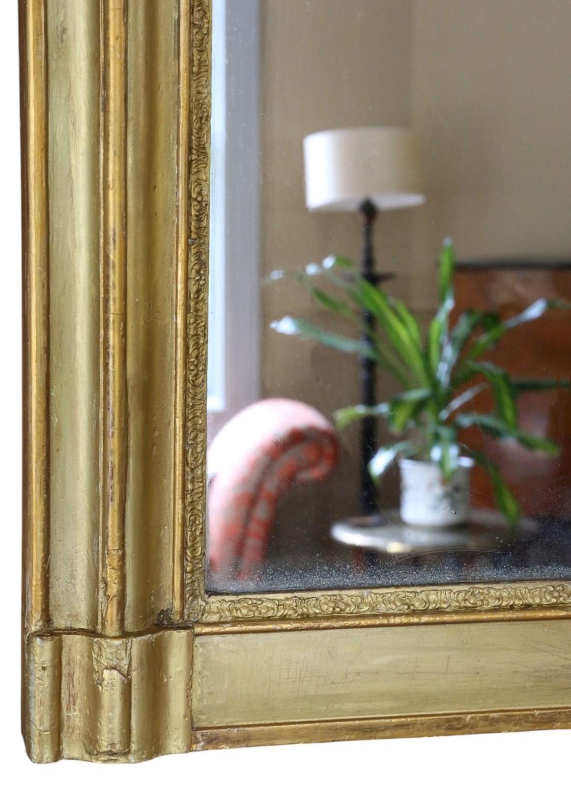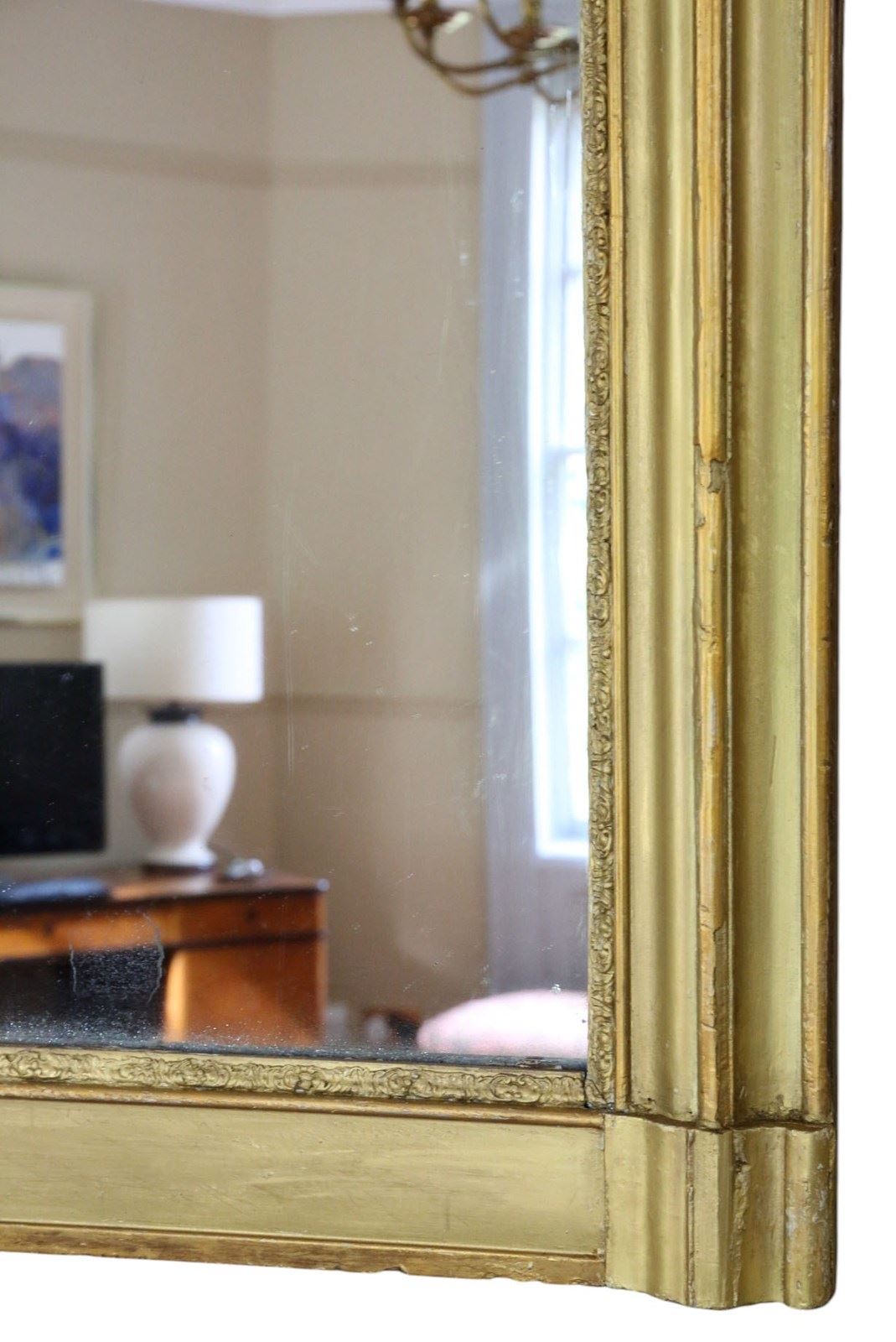 Add timeless elegance to your home with this large 19th-century antique giltwood overmantel mirror. Its impressive scale and classical design make it a sophisticated focal point above a fireplace, in an entrance hall, or as a statement piece in a living or dining room.