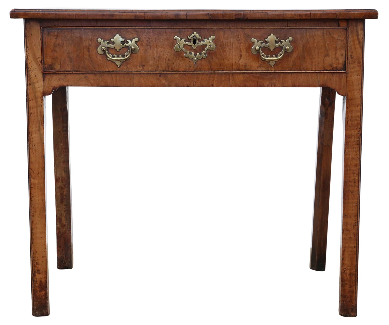 A charming and versatile Georgian walnut table with excellent proportions, useful storage, and beautifully developed period character.