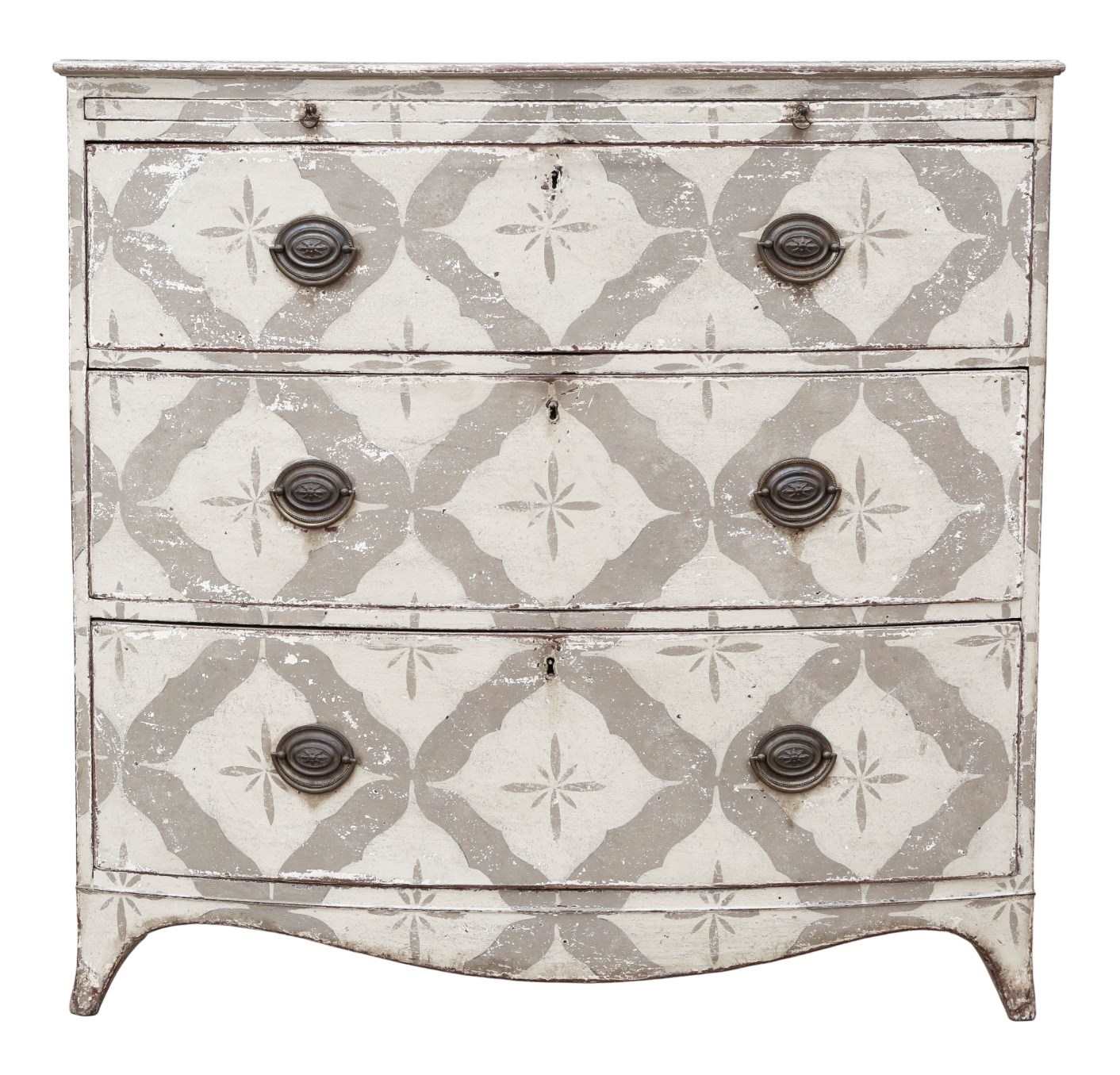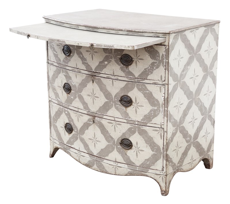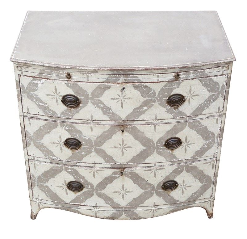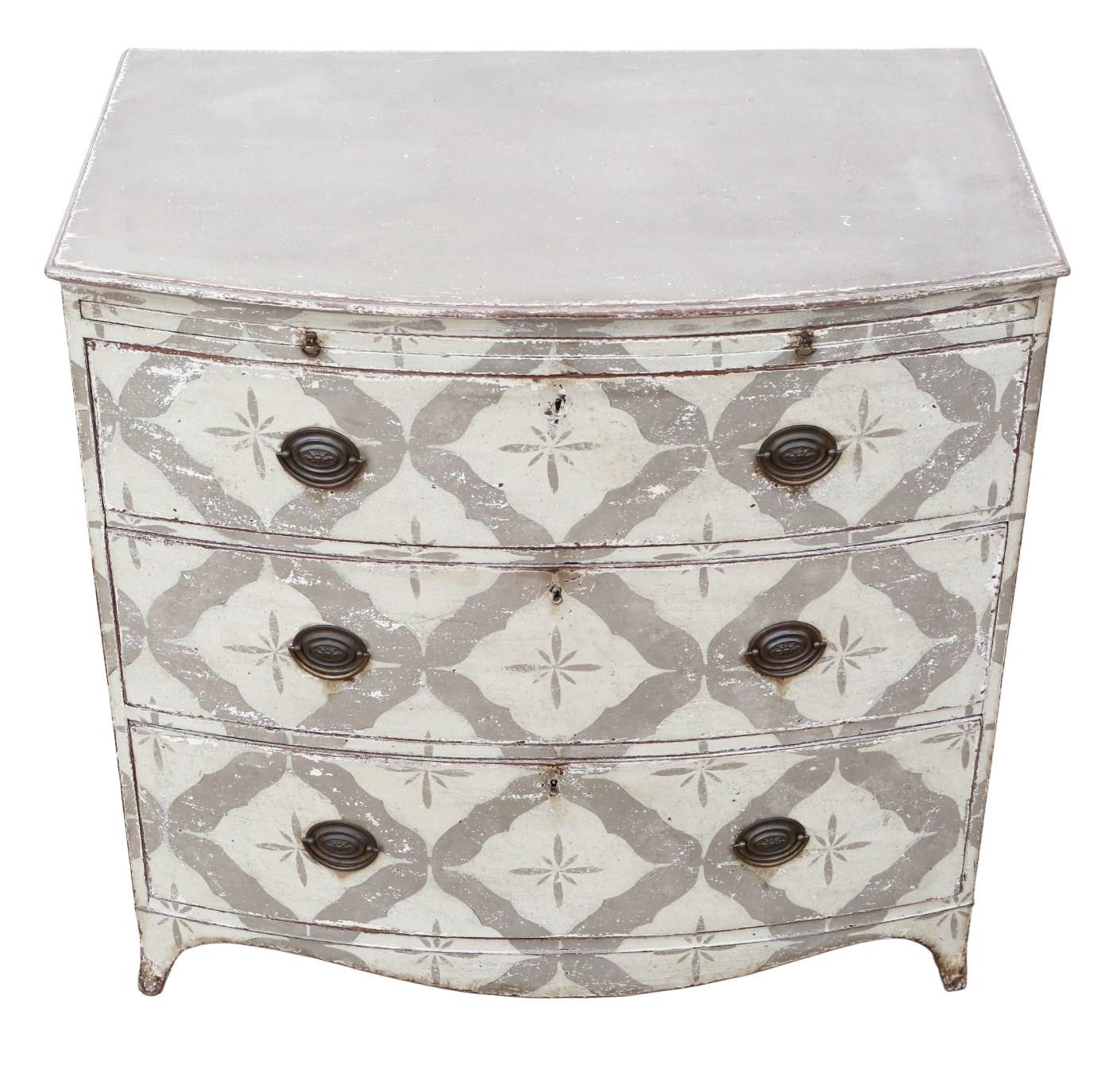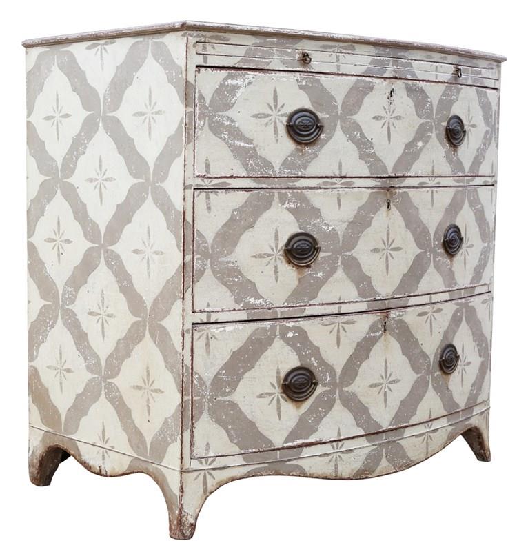 Antique 19th Century Bow Front Painted and Decorated Chest of Drawers / Commode – High Quality