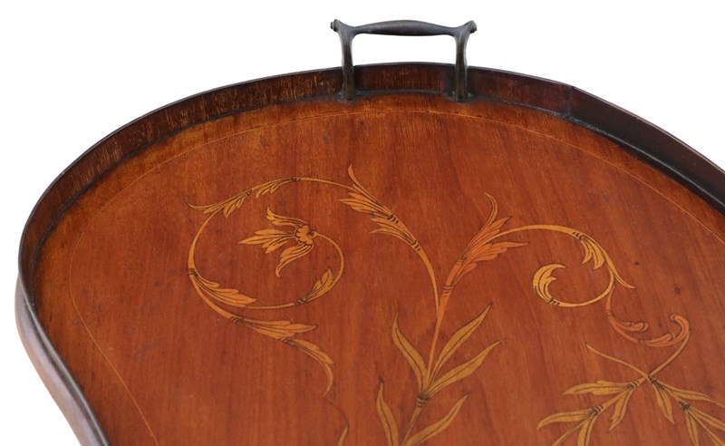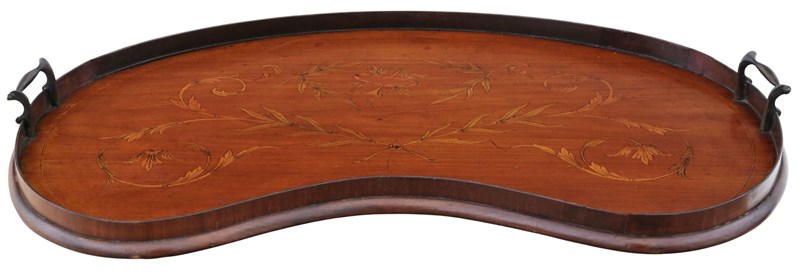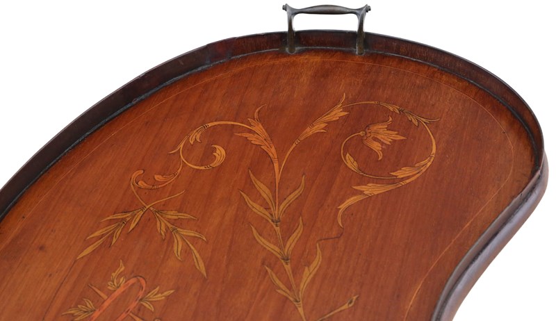 Antique 19th Century Fine Quality Inlaid Mahogany Kidney-Shaped Serving Tray