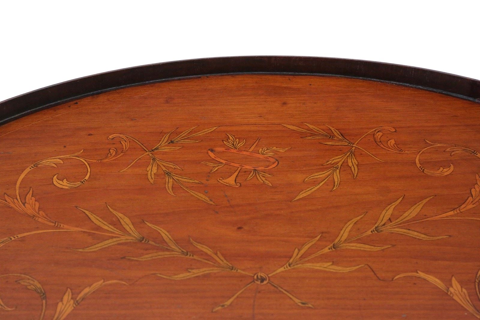 Antique 19Th Century Fine Quality Inlaid Mahogany Kidney-Shaped Serving Tray