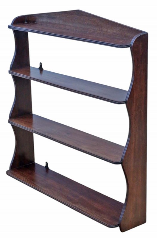 Antique 19th Century Mahogany Waterfall Bookcase Wall Shelves – Fine Quality & Elegant Design