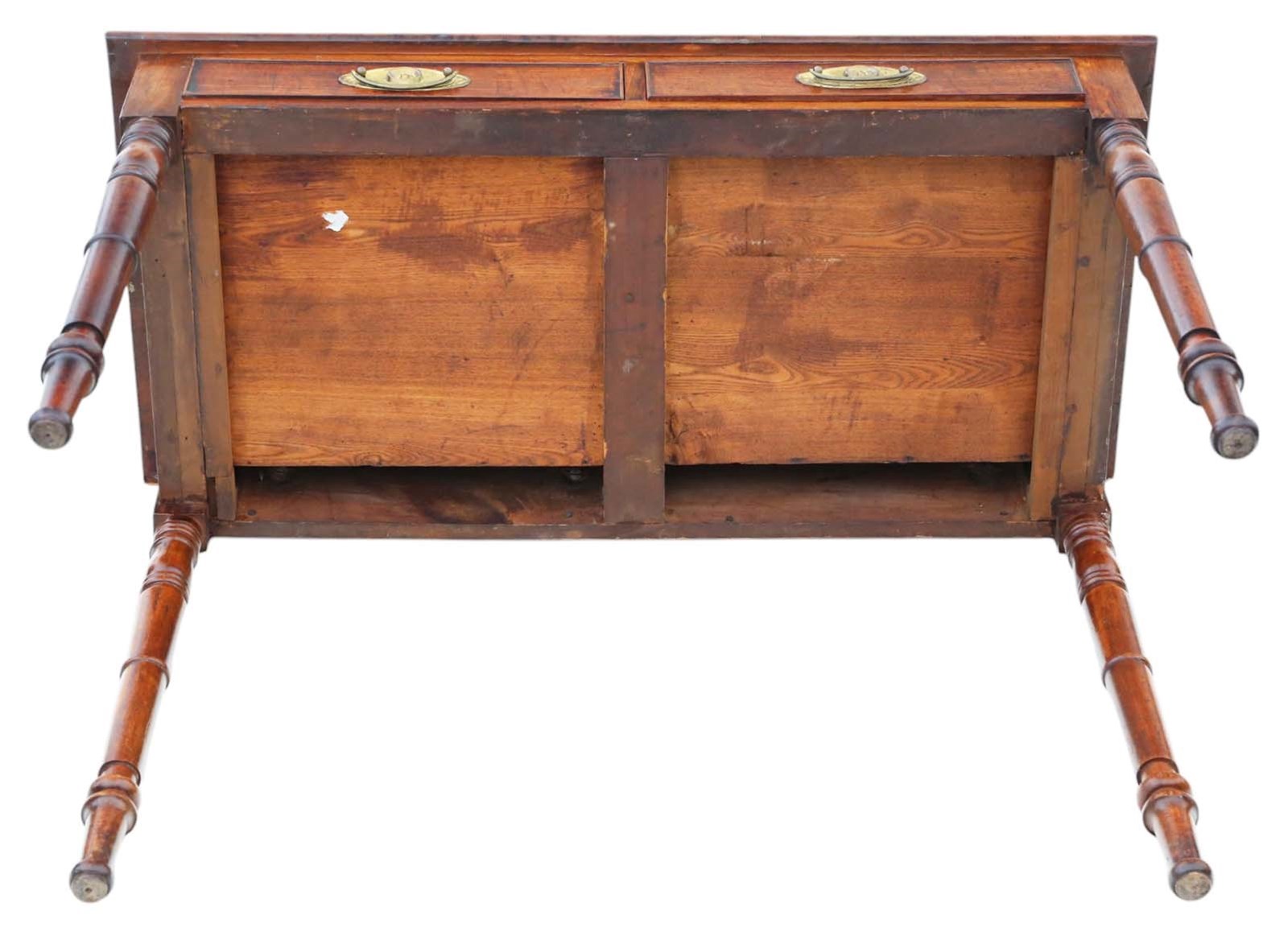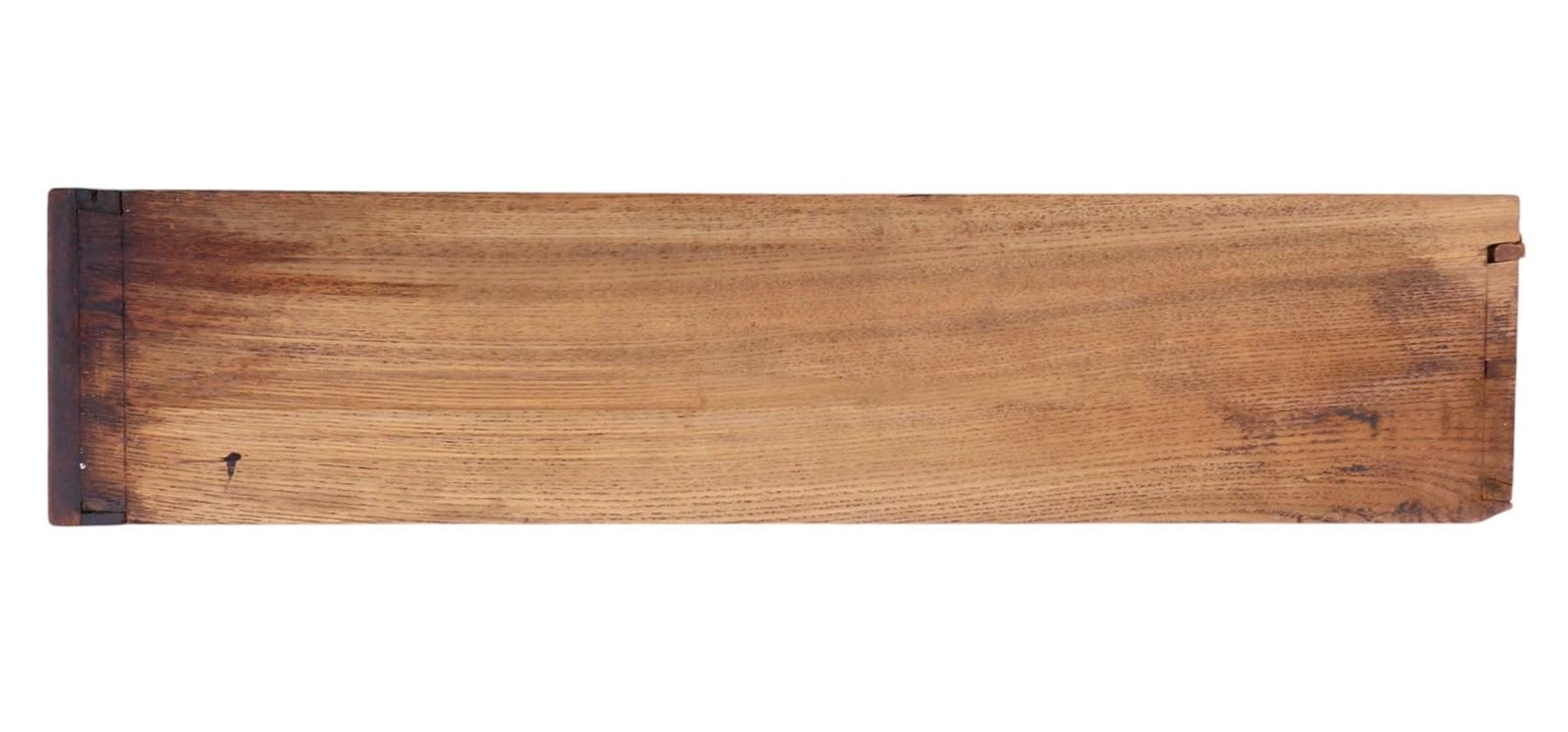 In good antique condition, it bears historic knocks, marks, repairs, wear, imperfections, and alterations consistent with its age. There are a few historic extinct woodworm holes that have been treated for good measure. Later handles.