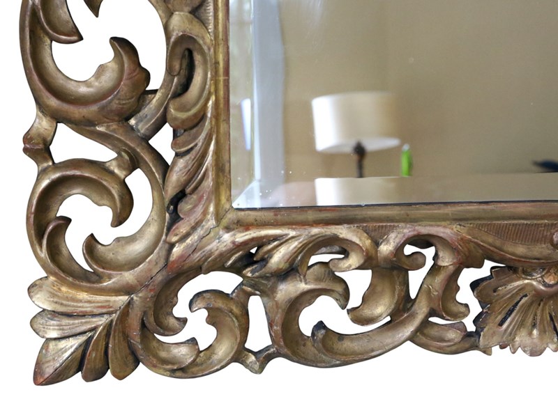Antique 19Th Century Giltwood Florentine Overmantel Wall Mirror – Ornate Frame
