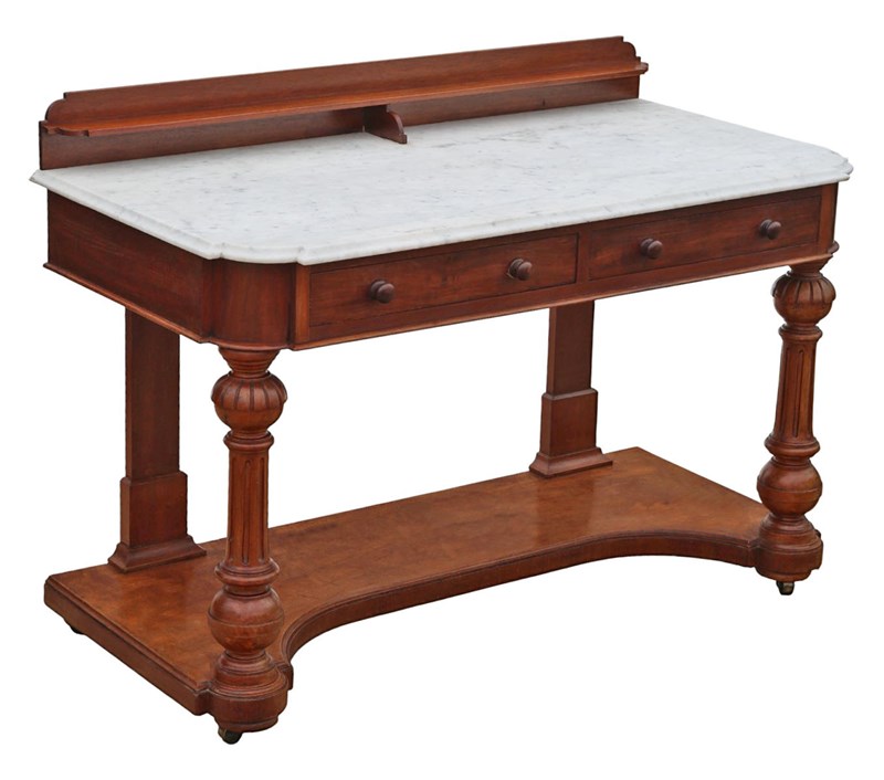 Antique 19th Century Mahogany & Marble Washstand c.1870 – Two-Drawer Dressing Table