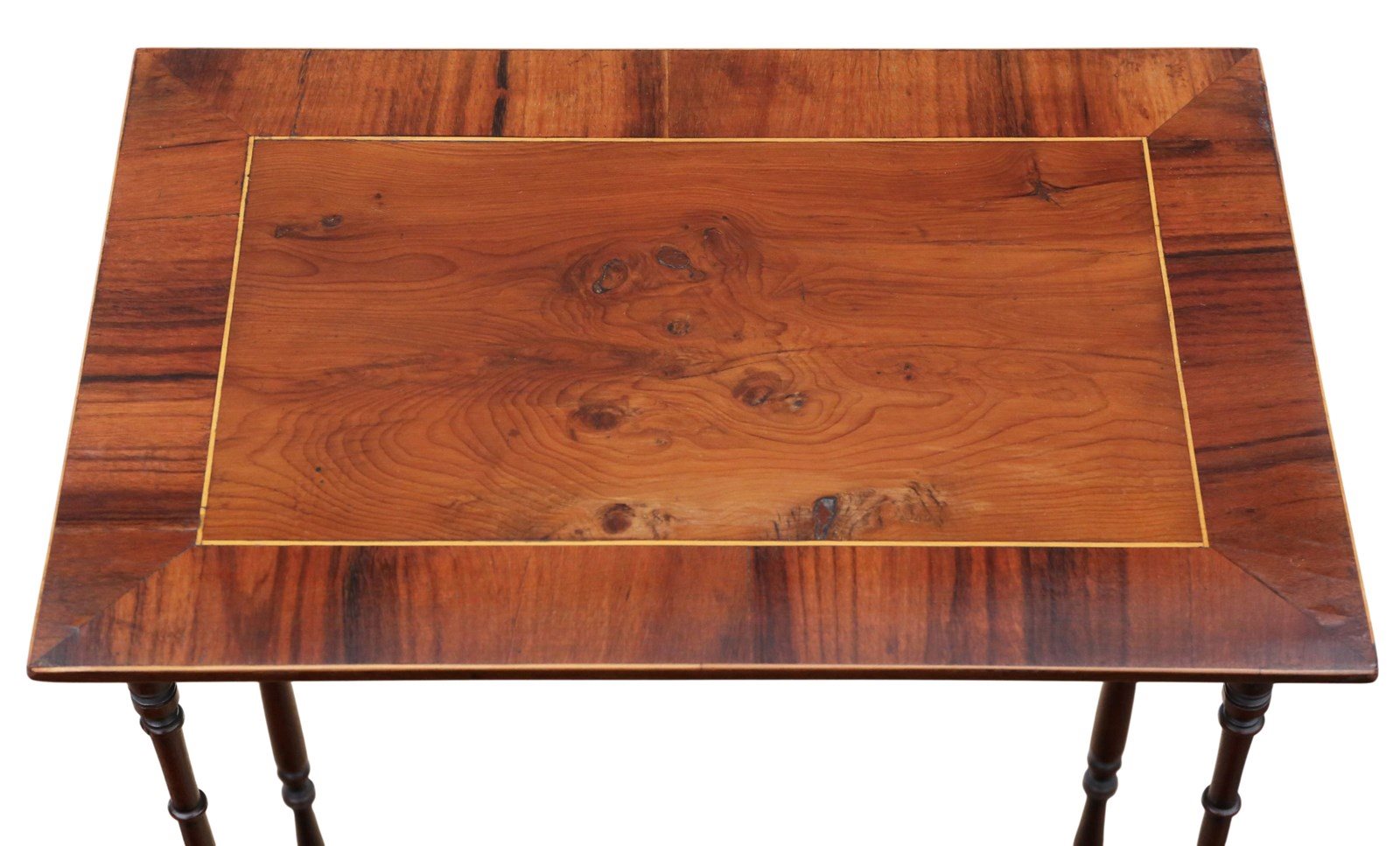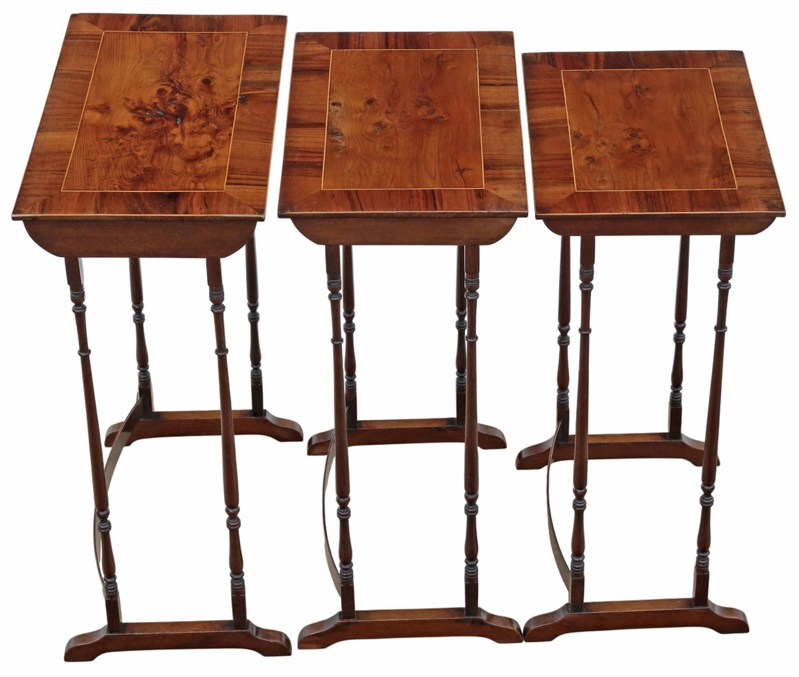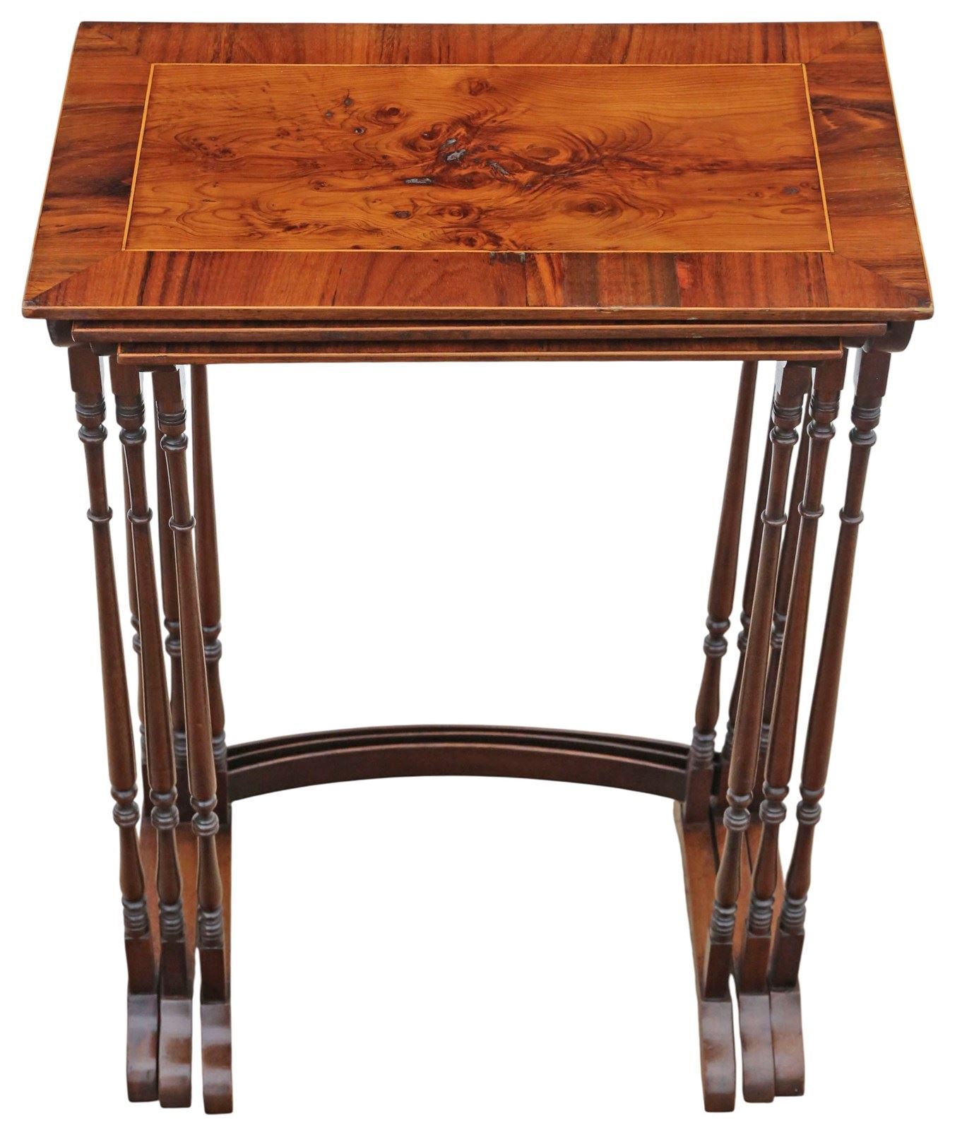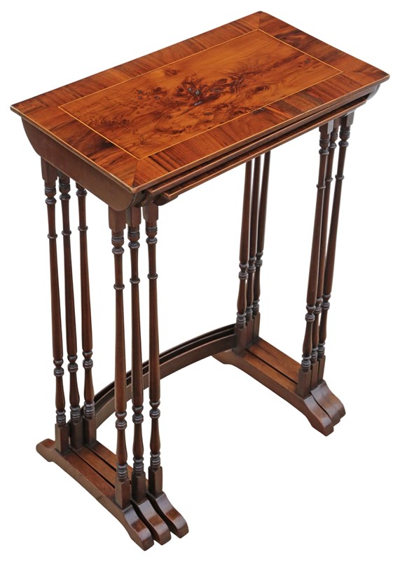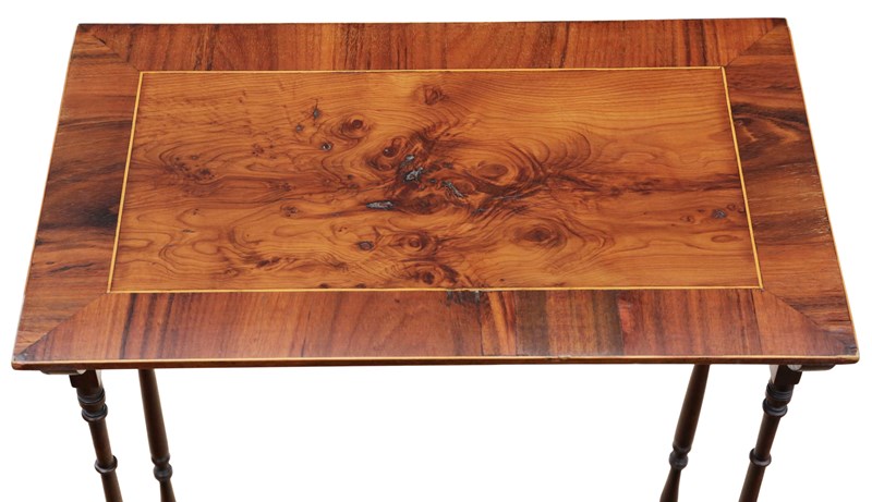 Antique 19Th Century Mahogany Nest Of 3 Tables – Yew Veneer Tops, Fine Quality