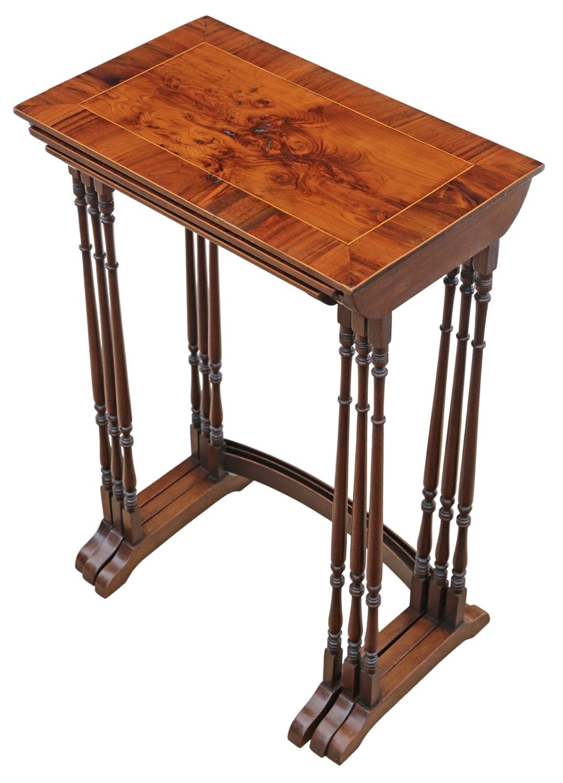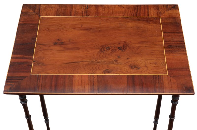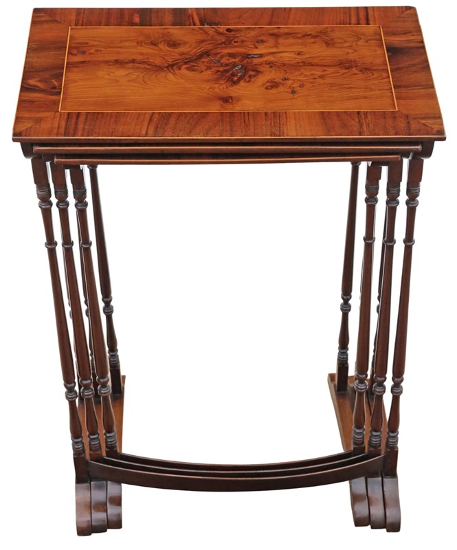 Antique 19th Century Mahogany Nest of 3 Tables – Yew Veneer Tops, Fine Quality