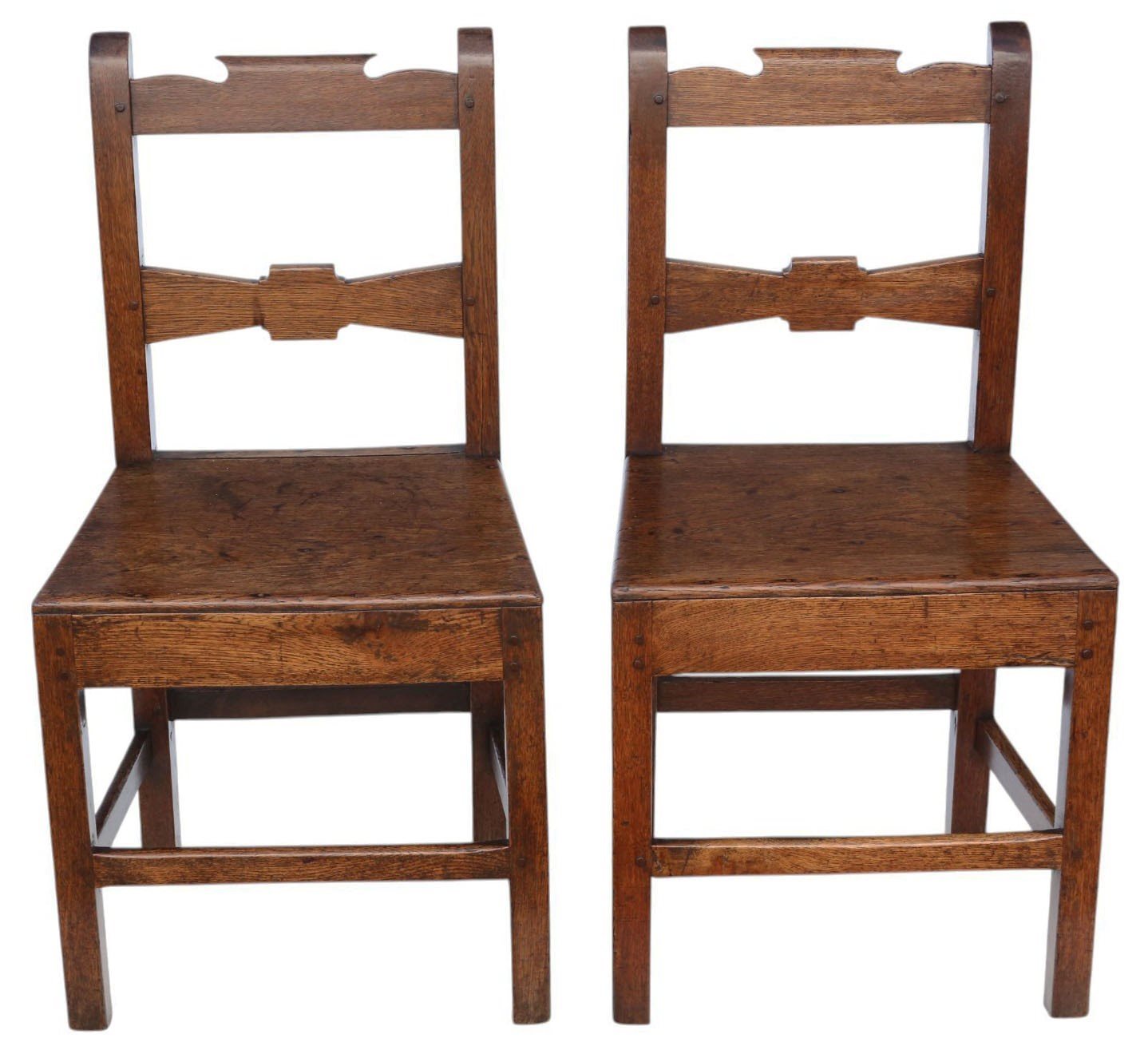 Antique 19Th Century Pair Of Oak Chairs – Fine Quality Hall, Kitchen Chairs