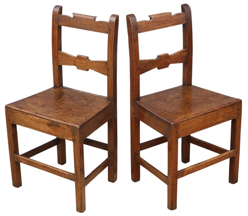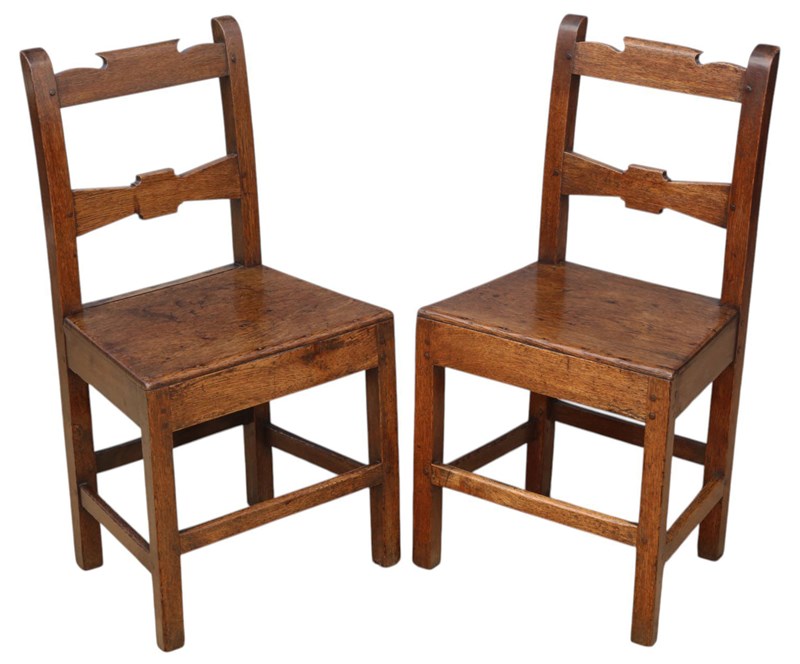 A handsome pair of 19th-century oak chairs, full of age, character, and charm. Possibly of Welsh origin, with their lovely colour and patina they would look excellent in the right location.