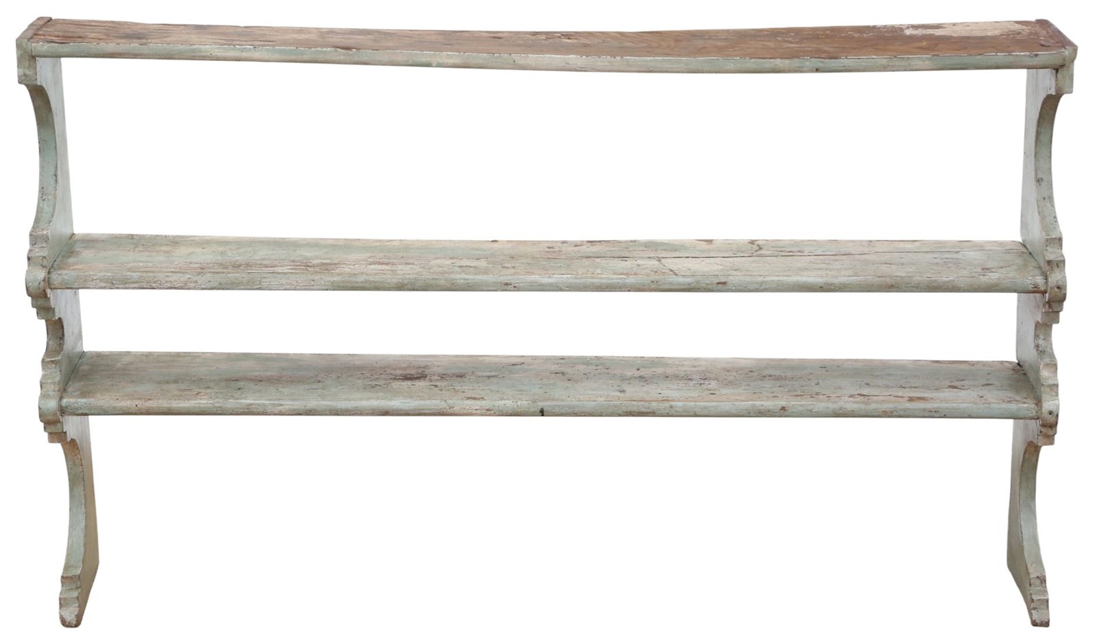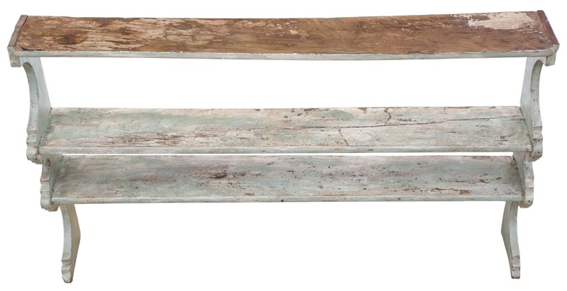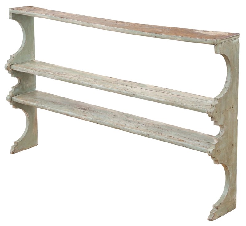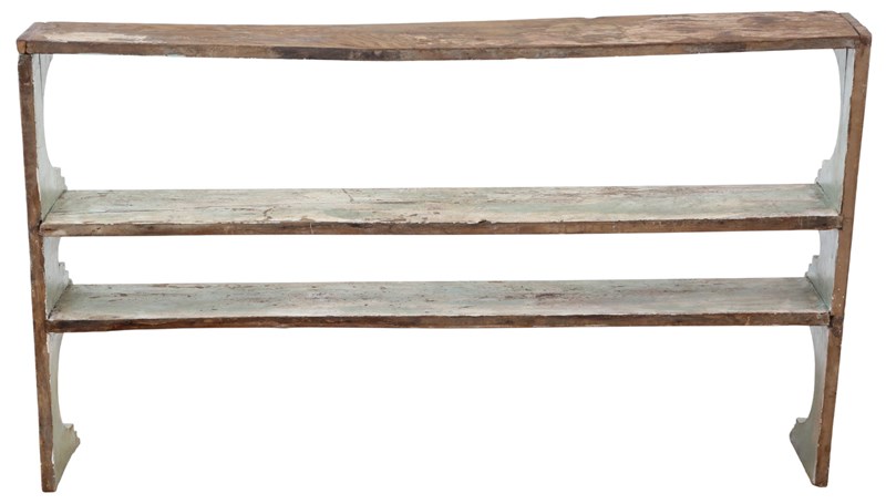 Antique 19Th Century Quality Painted Elm Display Wall Shelves - Period Bookcase